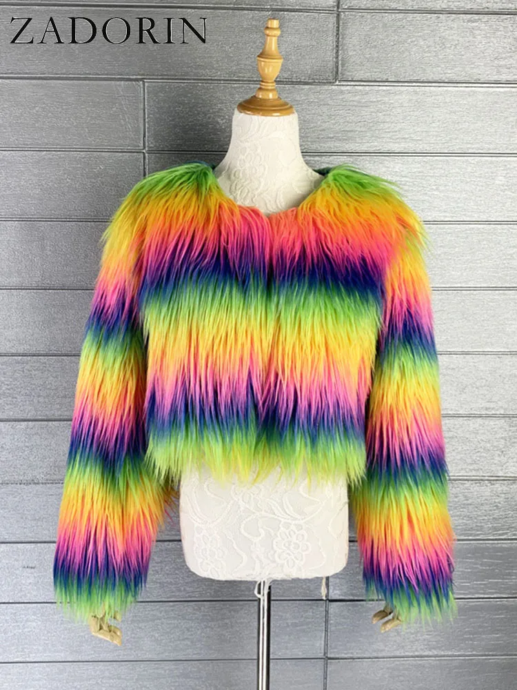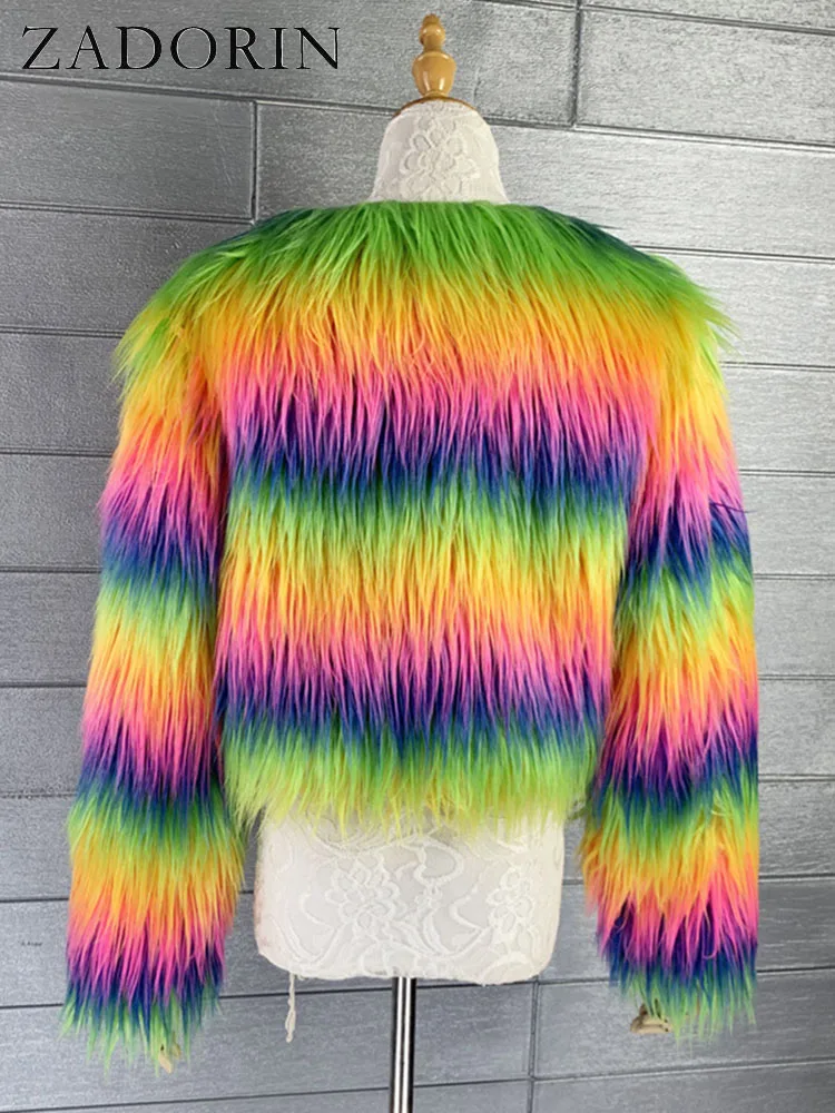 S-XL Colorful Faux Fur Crop Top Jacket Outdoor Autumn Casual Party Women's Wear