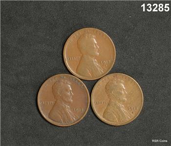 1913 PSD LINCOLN 3 COIN SET VG- FINE+! #13285