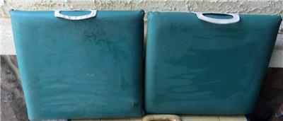 Each pad is designed for comfort and durability, providing cushioning during long hours of cheering on your favorite team. However, one pad does show signs of wear with small tears, as depicted in the detailed photos provided.