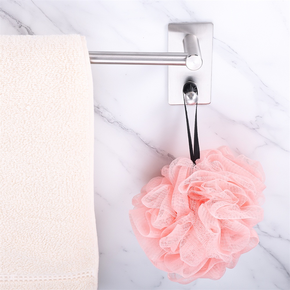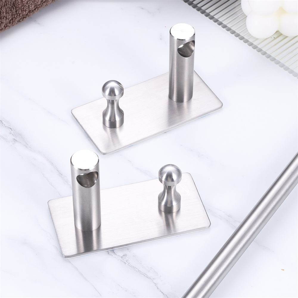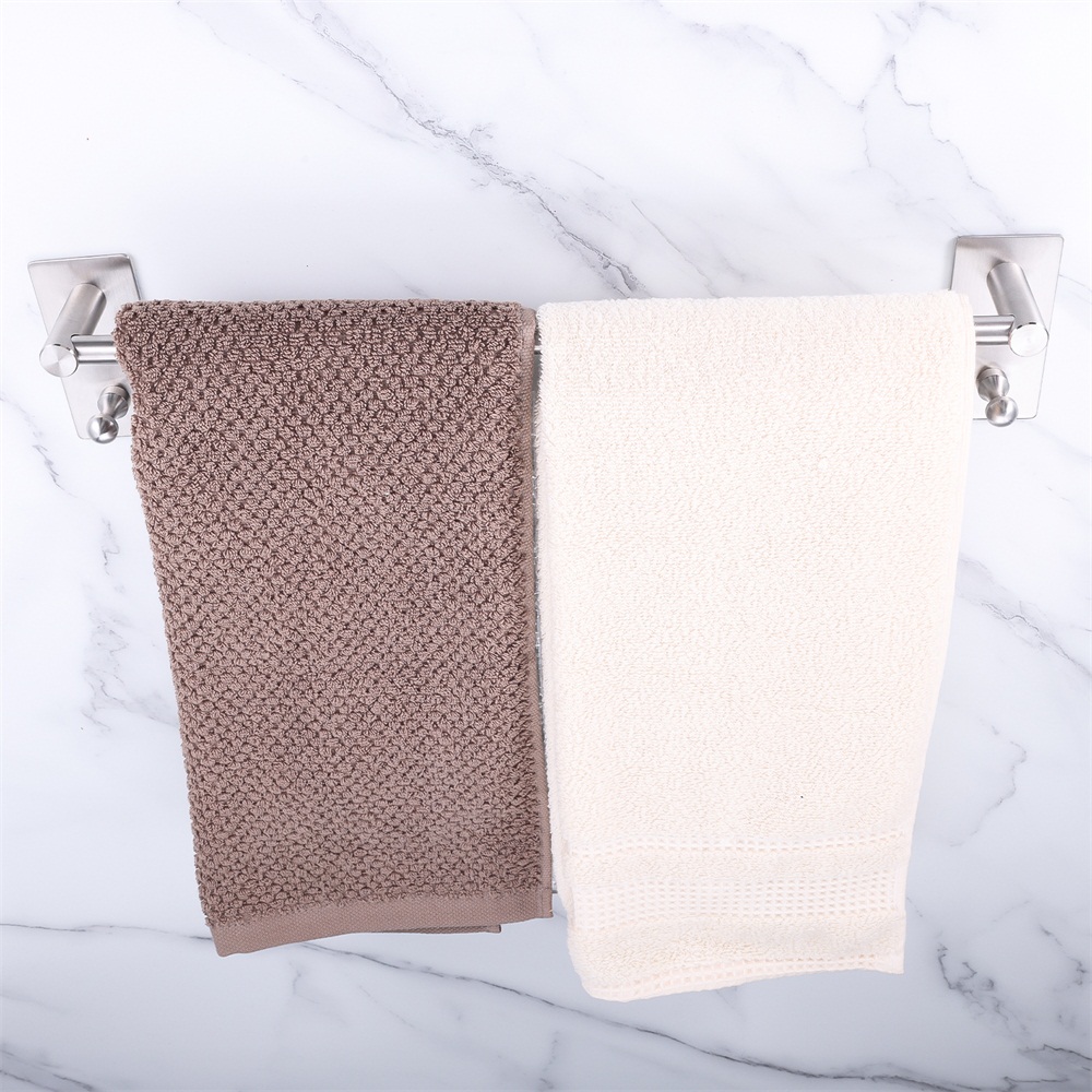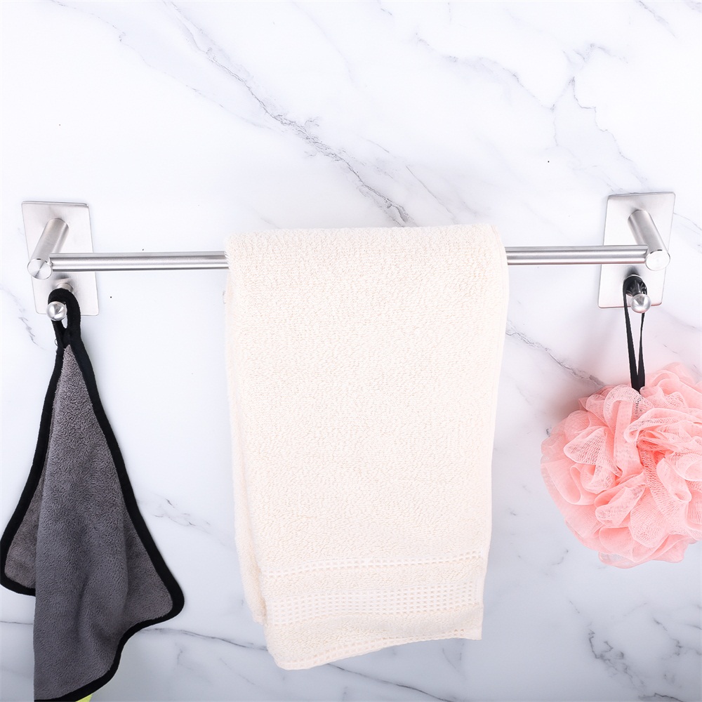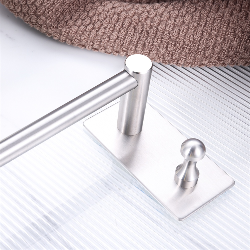 Towel rail simply peel off a film adhesive pad without drilling or other tools and stick it to the smooth wall surface, wait for 48 hours before you can use it. The sticky pad is strong adhesive and can withstand 5 kg/11lbs.