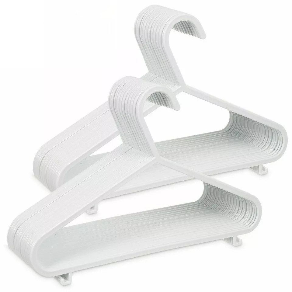 Tidy Closet: White Hangers to match any closet décor and can be used to hang almost any item of clothing, including trousers thanks to the handy trouser bar.