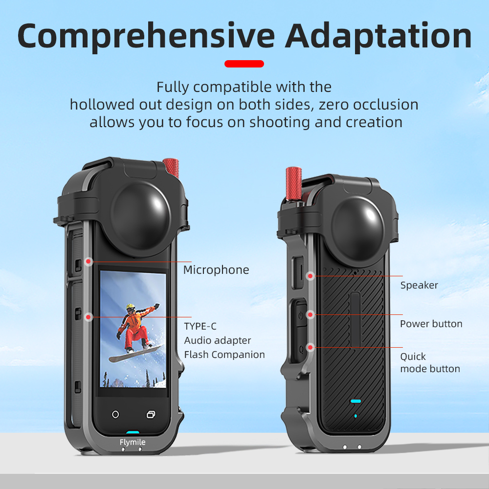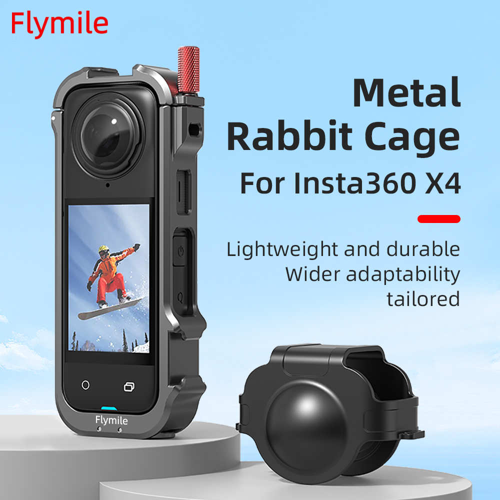 For Insta360 X4 Camera Rabbit Cage Metal Frame + Lens Caps Protection Cover