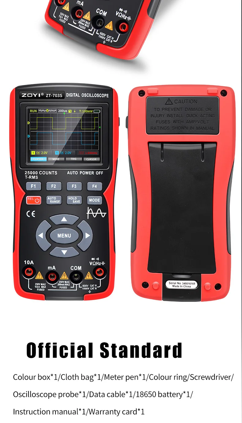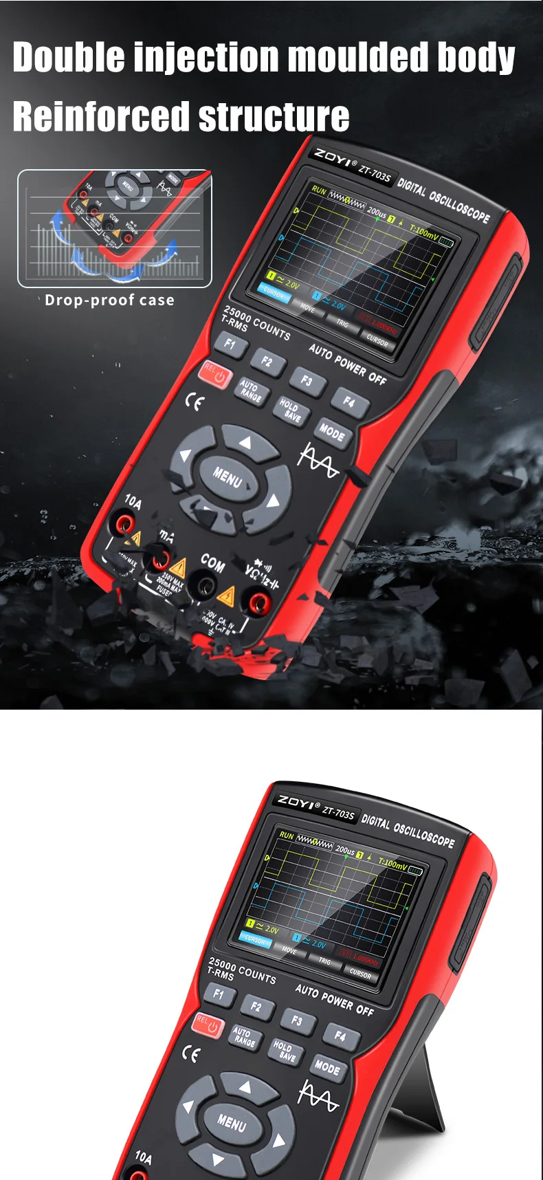 【Intelligent Anti-burning】: Full-grade overload protections, built-in intelligent anti-burn chip, and double ceramic fuses, to prevents the misuse of burn meter, safer to use. The built-in high-voltage protecting module can effectively prevents damage to the oscilloscope from high-voltage currents caused by misuse or equipment failure, improving the service time and safety of the equipment.