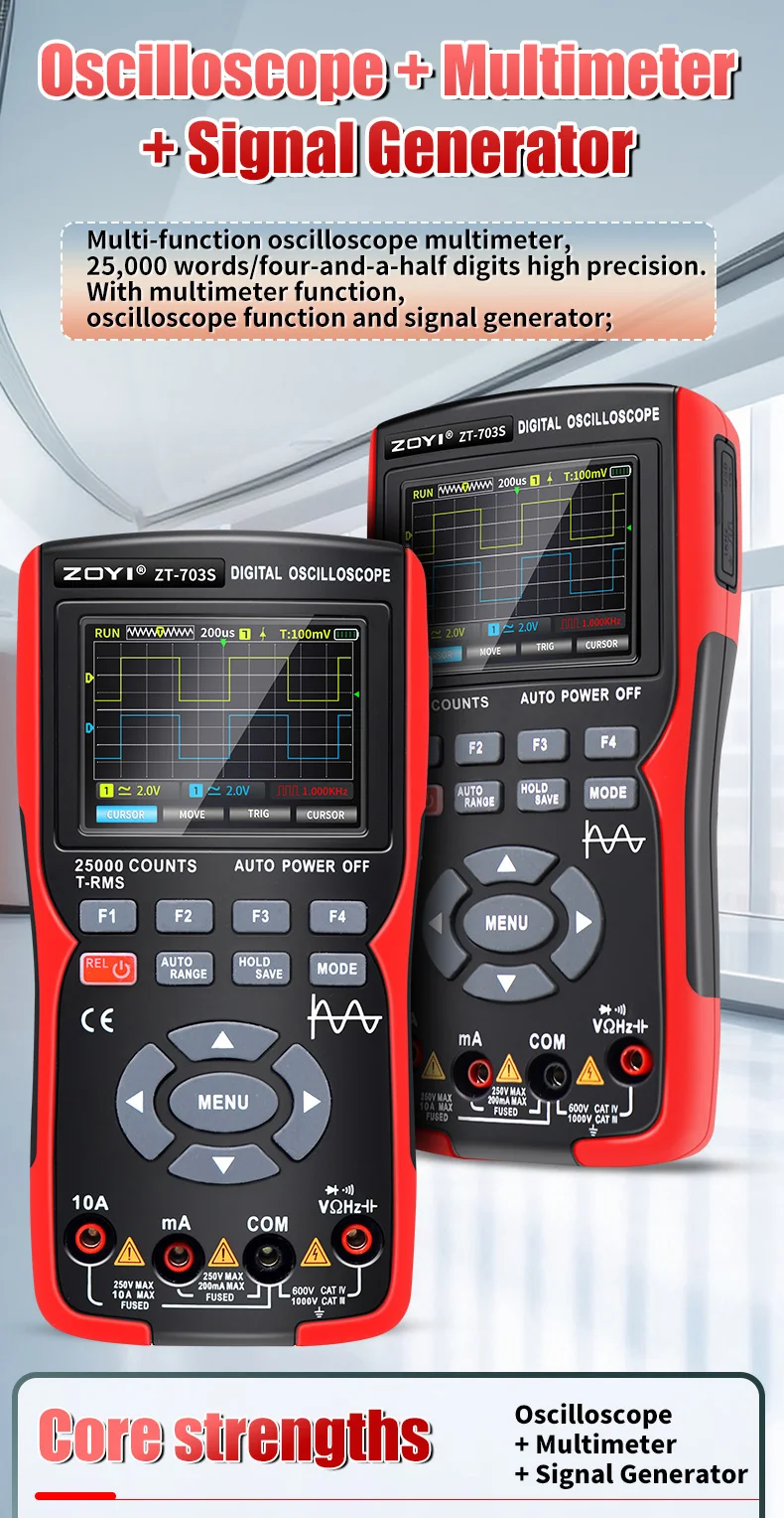【Signal Generator】: Equipped with a built-in signal generator function, with automatic waveform measurement and recognition function, no need to display the measured signal waveform clearly without measured signal waveform.