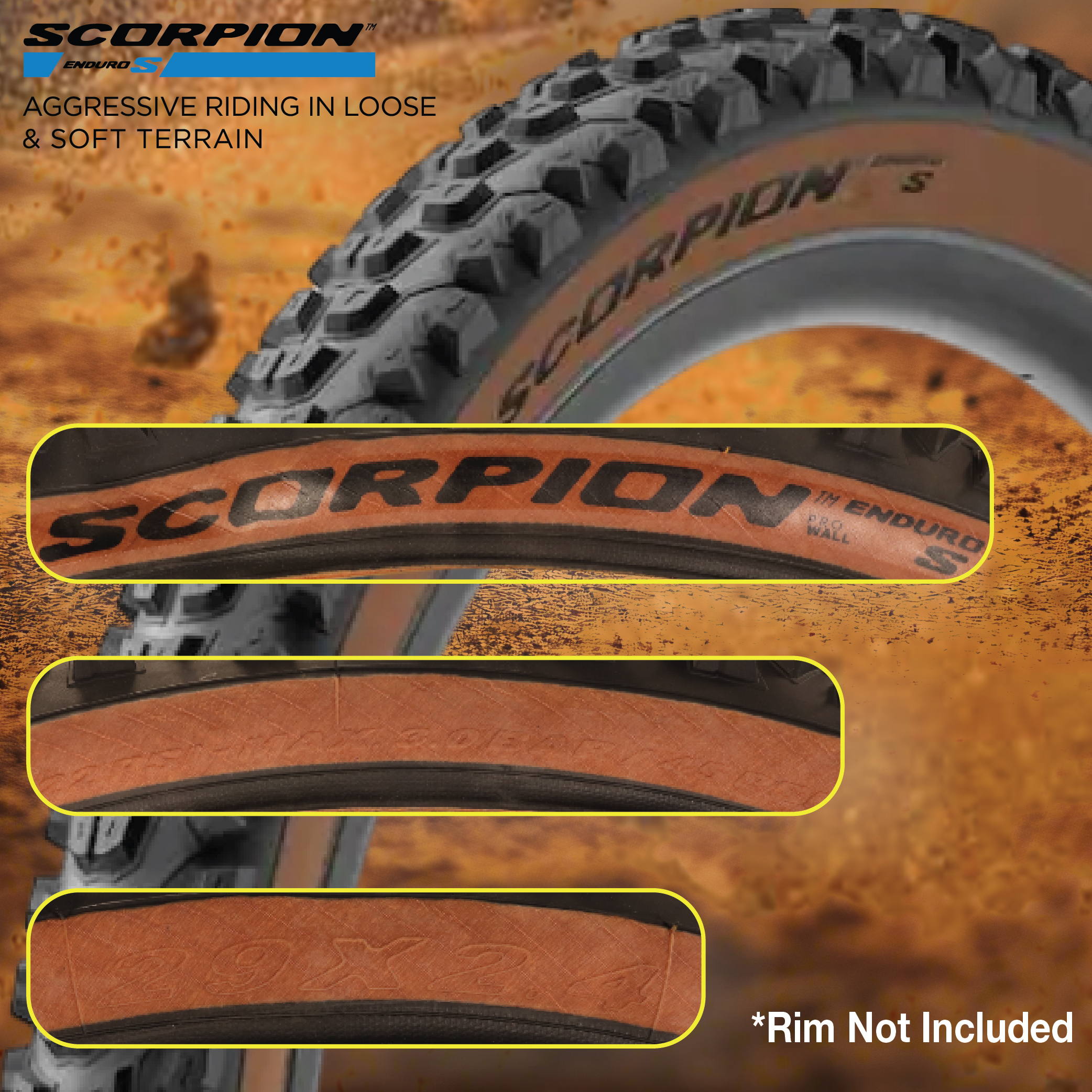 The Pirelli Scorpion Enduro S Bicycle Tire is crafted for aggressive enduro riders seeking maximum grip and control on soft and loose terrains. Designed for challenging trails and technical descents, this tire features an aggressive, high-profile tread pattern that excels in loose dirt, mud, and rugged conditions. The SmartGRIP Gravity Compound, derived from Pirelli’s motorsport expertise, delivers superior traction and braking performance in both wet and dry conditions, ensuring confident handling on demanding trails. The 60 TPI HardWALL casing provides robust sidewall reinforcement and enhanced puncture protection, offering stability and durability under high-stress enduro riding. Tubeless-ready for improved traction and lower rolling resistance, the Scorpion Enduro S is ideal for riders tackling steep descents, rocky trails, and mixed terrains. Perfect for competitive enduro racing or adventurous trail sessions, this tire delivers unmatched grip, durability, and reliability for pushing the limits.