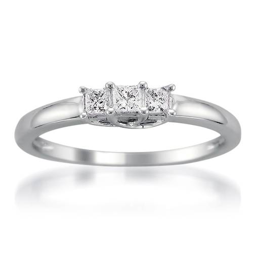 1/4ct 3 Stone Princess Cut Diamond Ring 14K White Gold