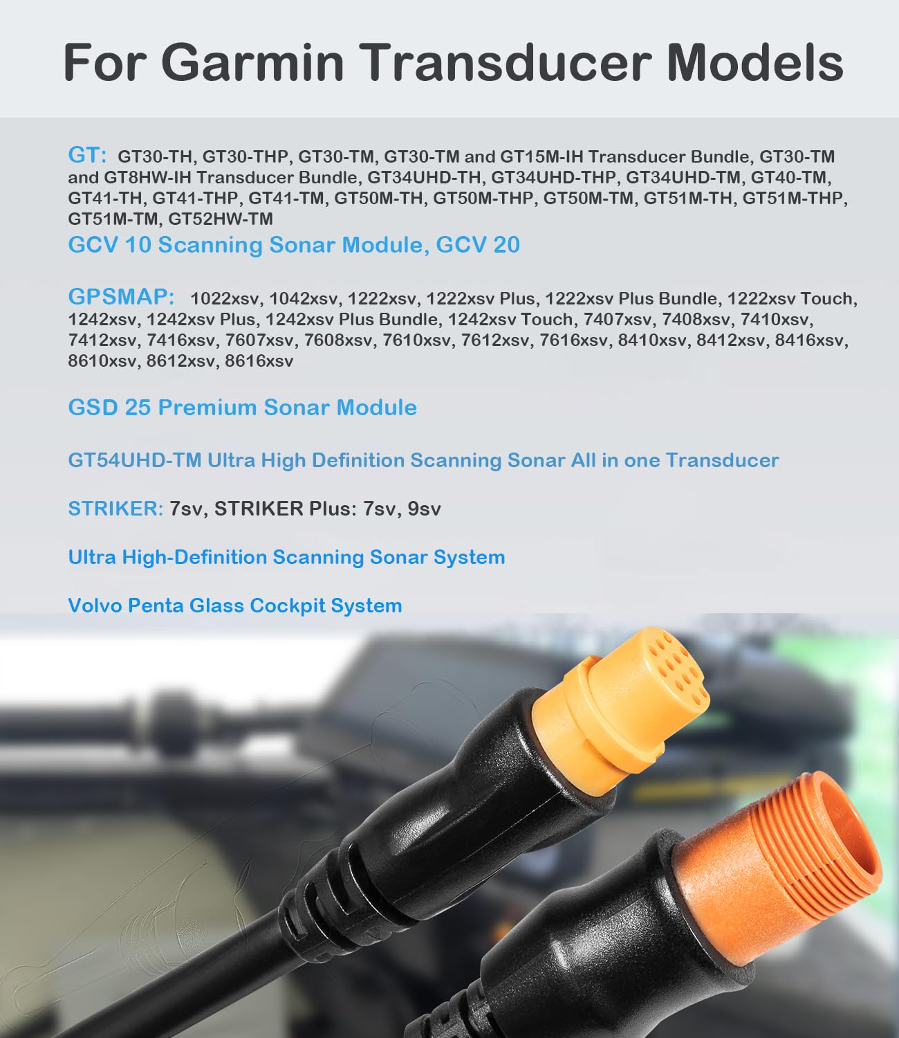 ✔️Compatible with most 12-Pin Garmin devices: Garmin GT30 Series, Garmin GT34 Series, Garmin GT40-TM, Garmin GT41 Series, Garmin GT50 Series, Garmin GT51 Series, Garmin GT52HW-TM, GCV 10 Scanning Sonar Module, GCV 20 (See pictures and descriptions for more models)