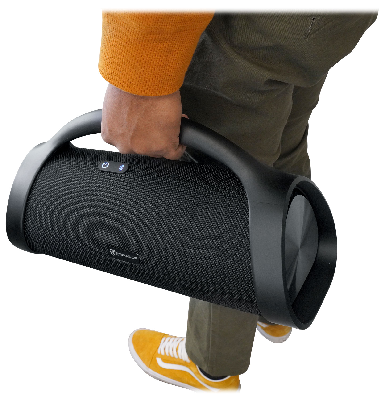 The Rockville SONIC-XXL is an XX large sized portable Bluetooth speaker that is engineered and DSP-tuned to have extremely deep bass with a very pleasant frequency curve. When you pick up this speaker you can feel the weight of the amplifier and the drivers. We give you 3 sound curves that all have amazing sound. Just hold the play/pause button to change from one sound curve to the next. The default one has the most extreme bass. The second EQ mode is similar to the first but with a bit less bass. The last curve is perfect for outdoors when you want more highs and mids. (The 3rd curve is the loudest one). All 3 sound modes have incredible sound.