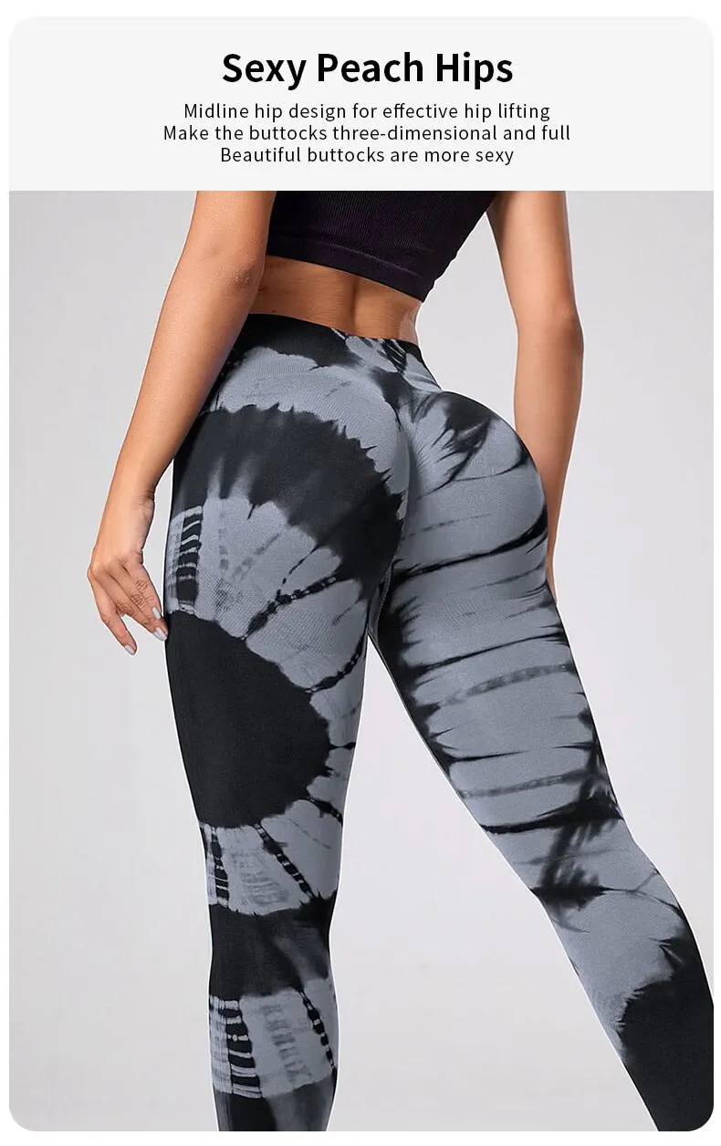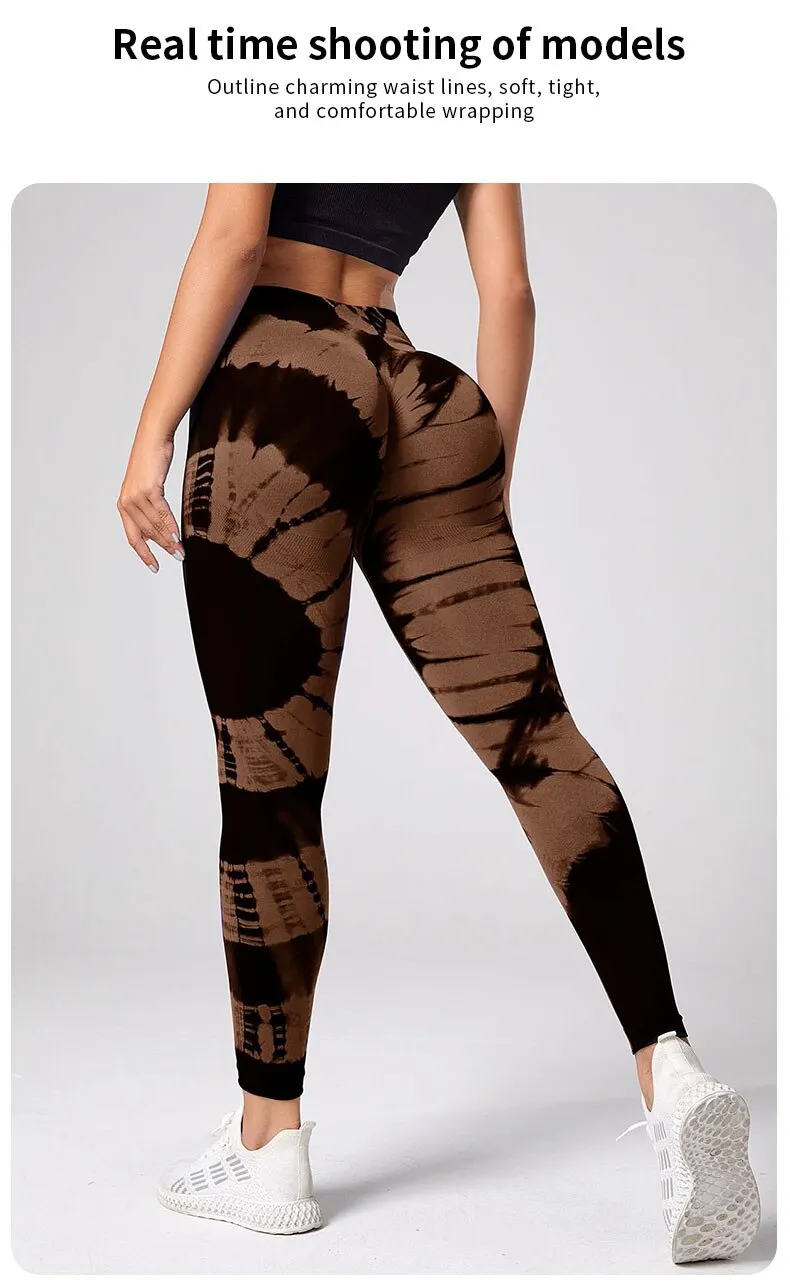 S M L Seamless Tie Dye Pattern Leggings For Women Fitness Yoga High Waist Pants