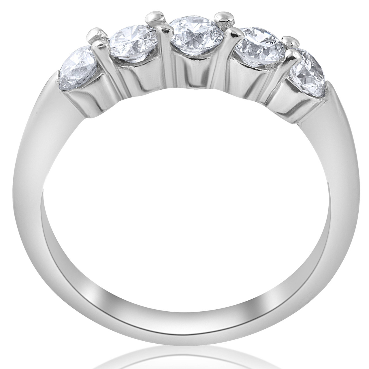 This classic five stone women's ring features round brilliant cut natural diamonds. All diamonds are set in solid 14k white gold.