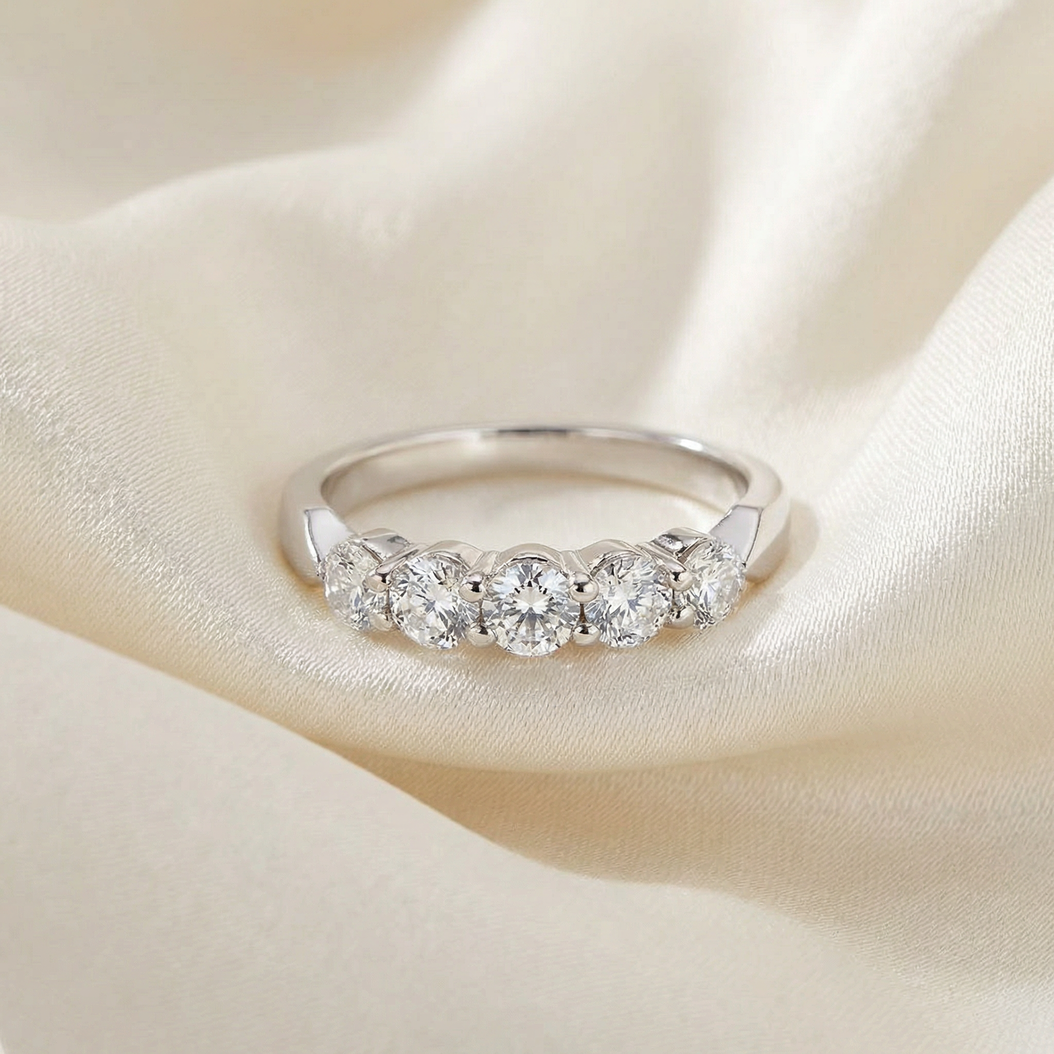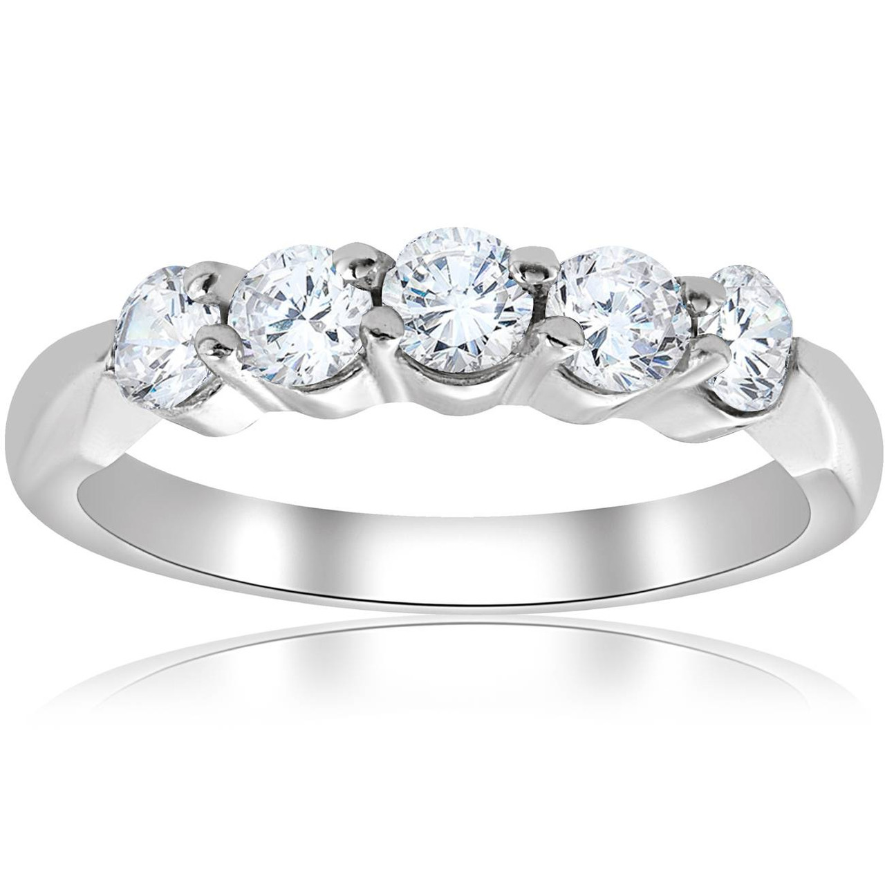 1/2ct Round Diamond Wedding Ring 14K White Gold Five Stone