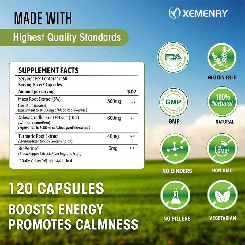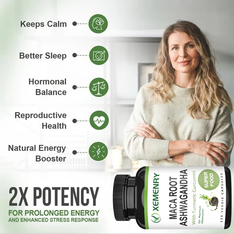 4-in-1 - Maca Root and Ashwagandha are adaptogens that help manage mental and physical stress, balance hormones, and keep you energized throughout the day. Turmeric helps with immune support, while piperine ensures maximum nutrient absorption.