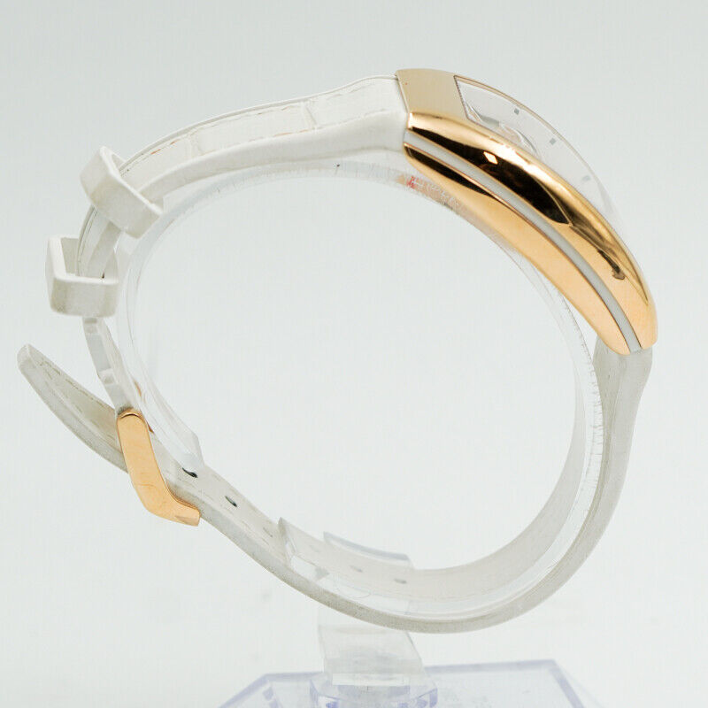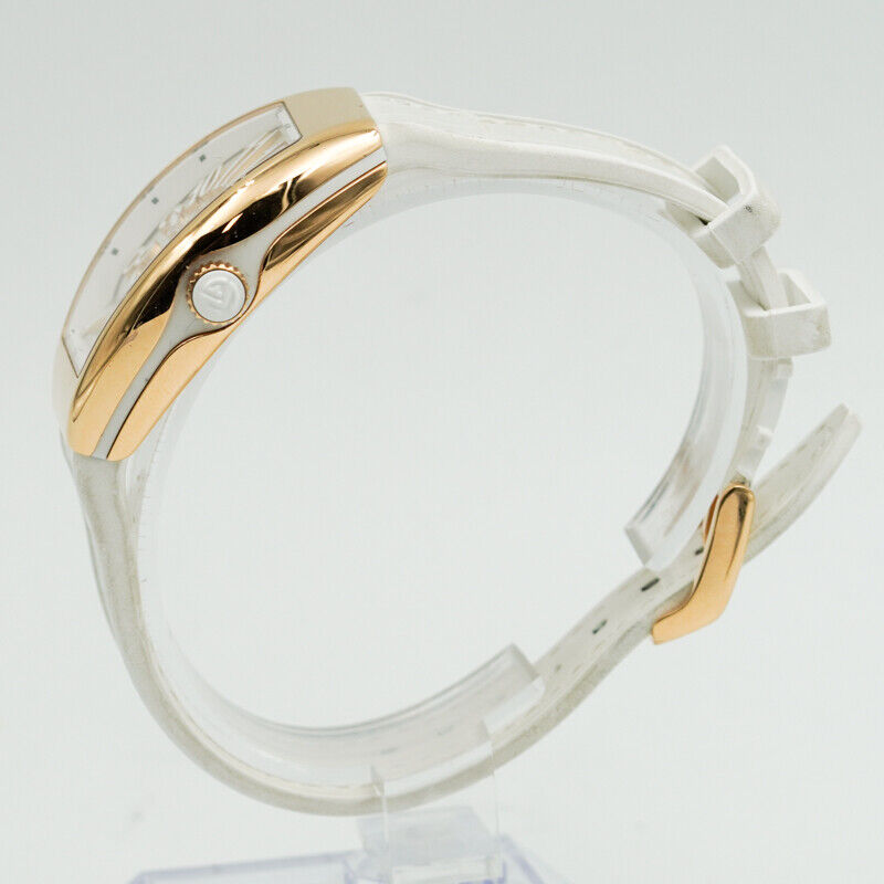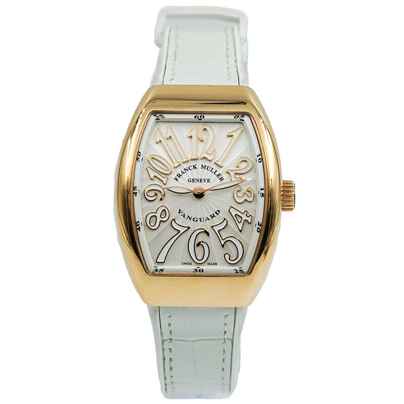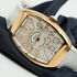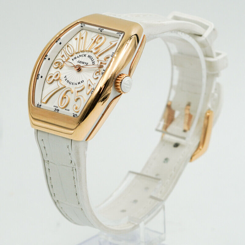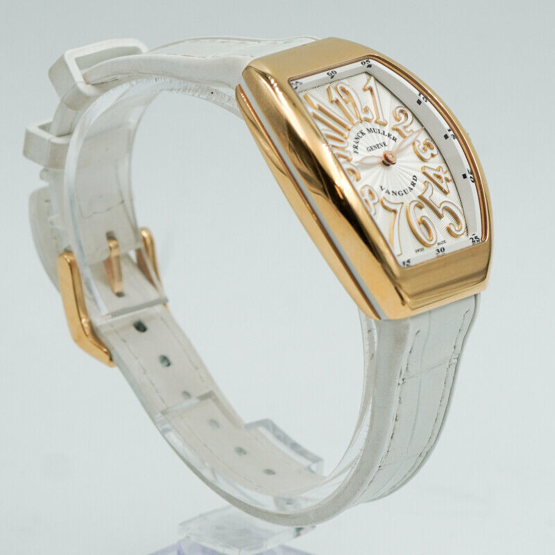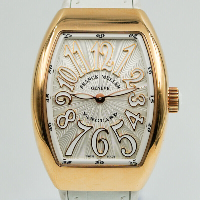 This unworn Franck Muller Vanguard features an 18K rose gold case cut in a tonneau shape. A hand sewn alligator strap is integrated in to the case giving the watch a clean, seamless look. The watch will come with its full box and papers as well as its full factory warranty! If you have any questions, please reach out!