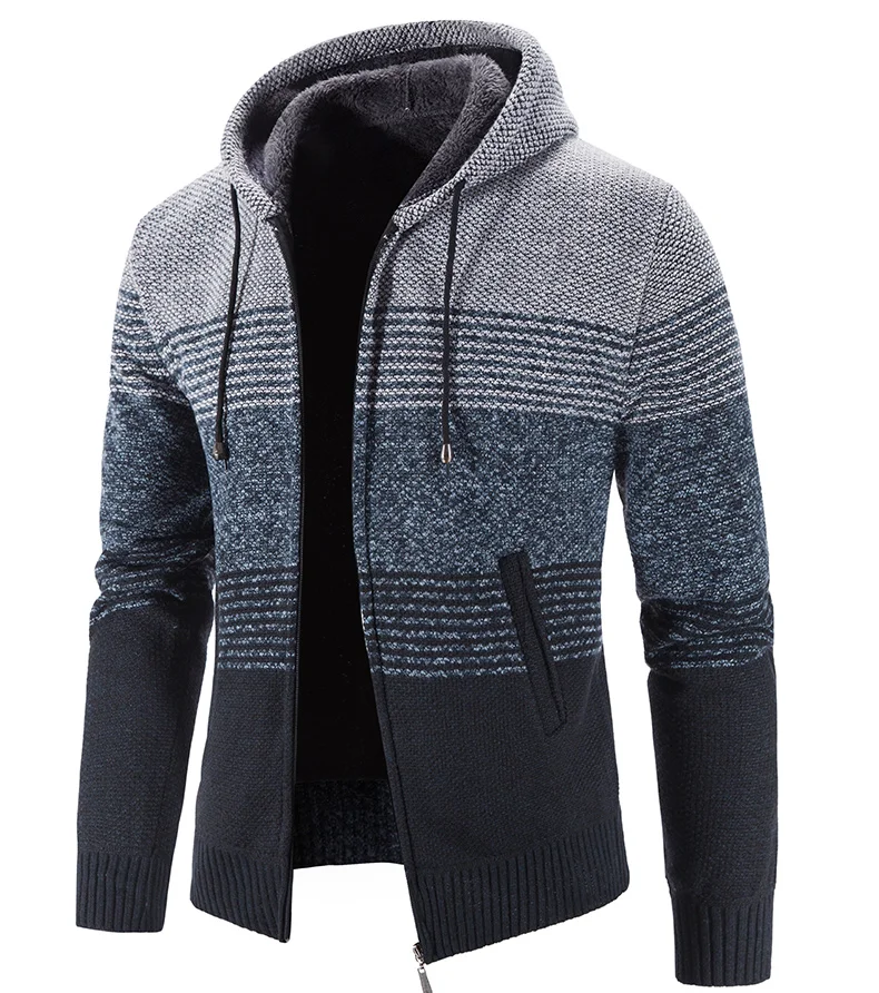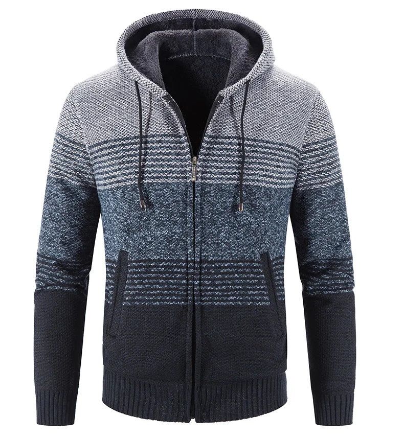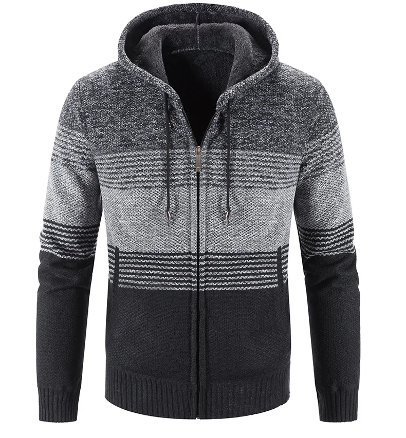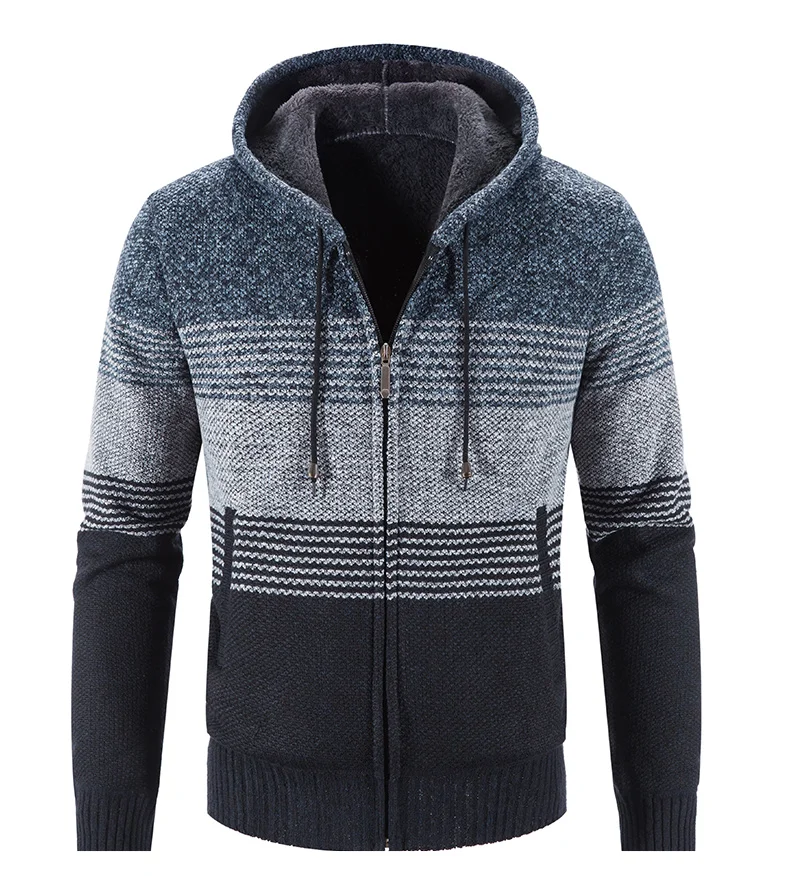 M-4XL Striped Sweater Jacket W/ Hood Y2K Korean Fashion Casual Wear For Men NEW