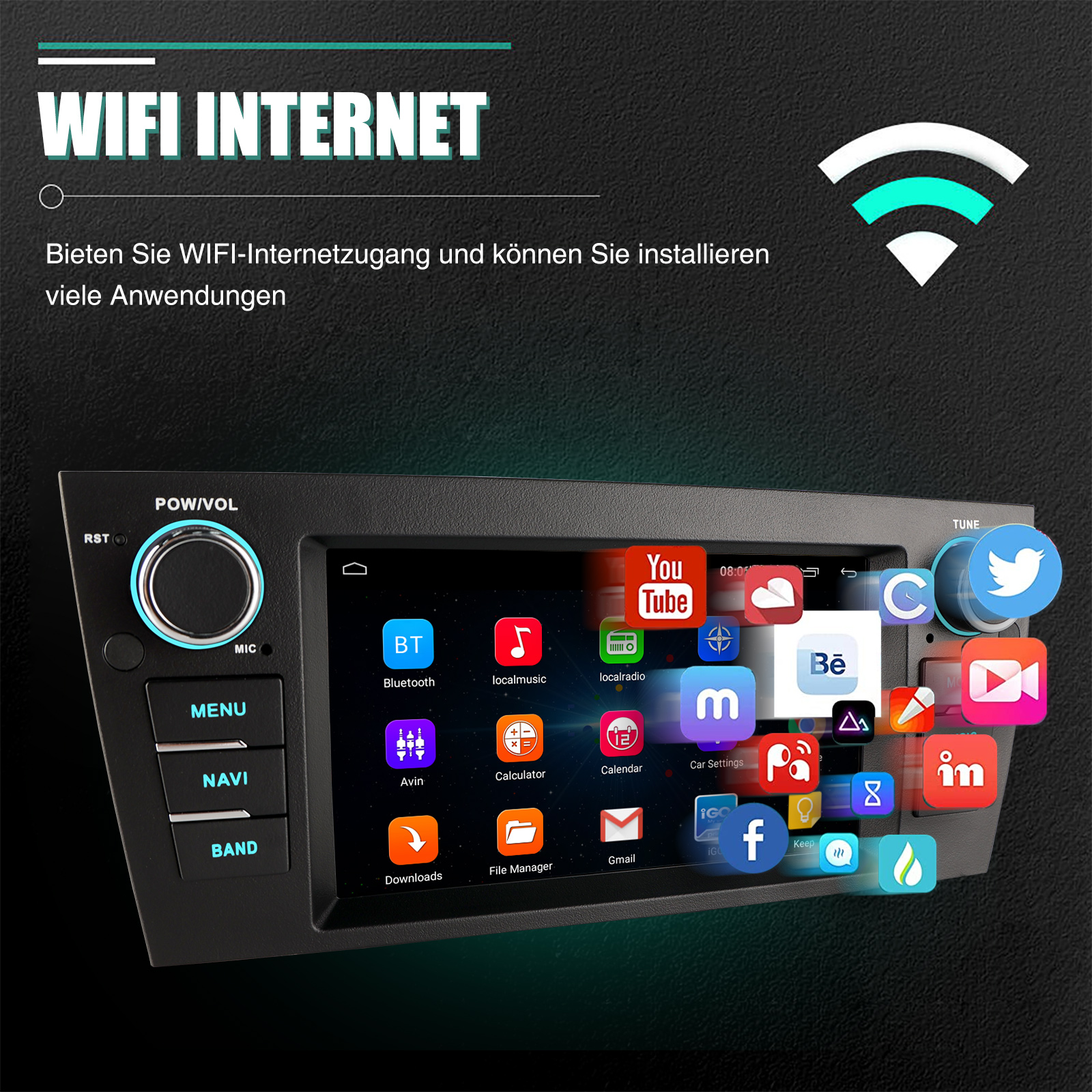Navigationssystem und WLAN: Unterstützt WiFi-Verbindung. Nachdem Sie das WLAN verbunden haben, können Sie jede APP aus dem App Store herunterladen, z. B. Youtube, Tik Tok, Spotify usw. Autoradio mit GPS, genaue Positionierung, stabiles Signal, Unterstützung bei der Verwendung von Online- oder Offline-Karten, keine Sorge mehr, sich zu verlaufen, wenn Sie unterwegs sind. Unabhängige Antenne sorgt für starken WLAN-Empfang.