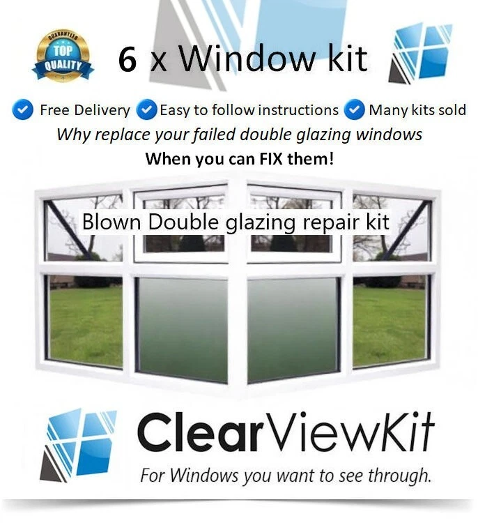 6 Window repair kit6 X Double glazing window repair kit that clears trapped condensation and reduces moisture in your blown, failed double glazing window unit.