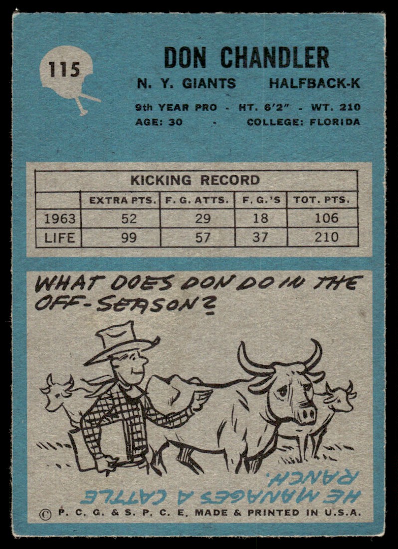 1964 Philadelphia Don Chandler New York Giants #115