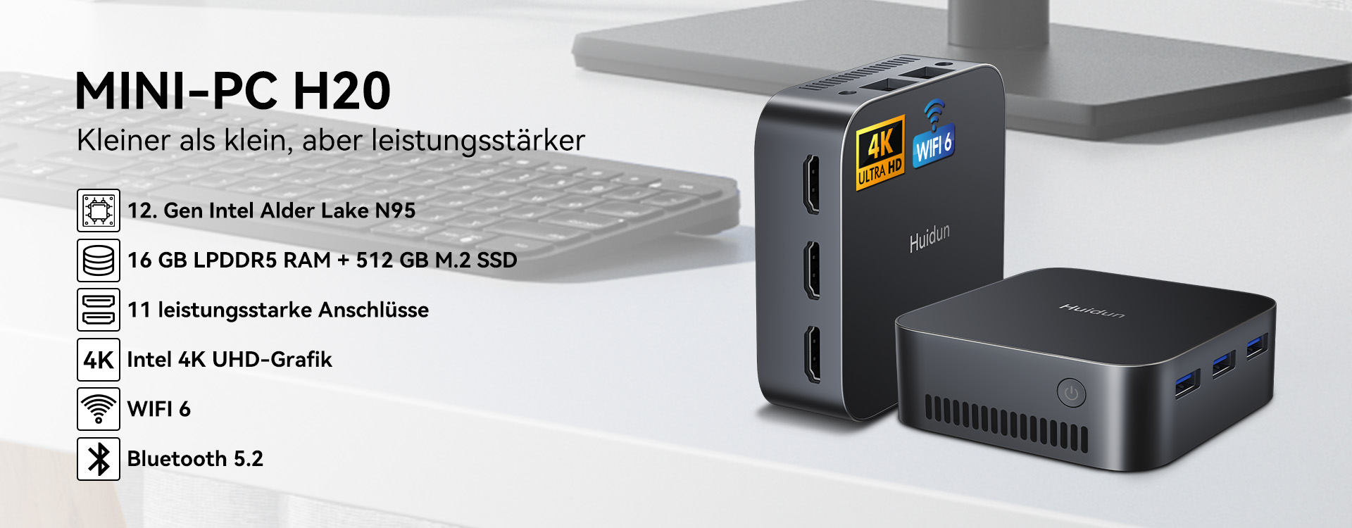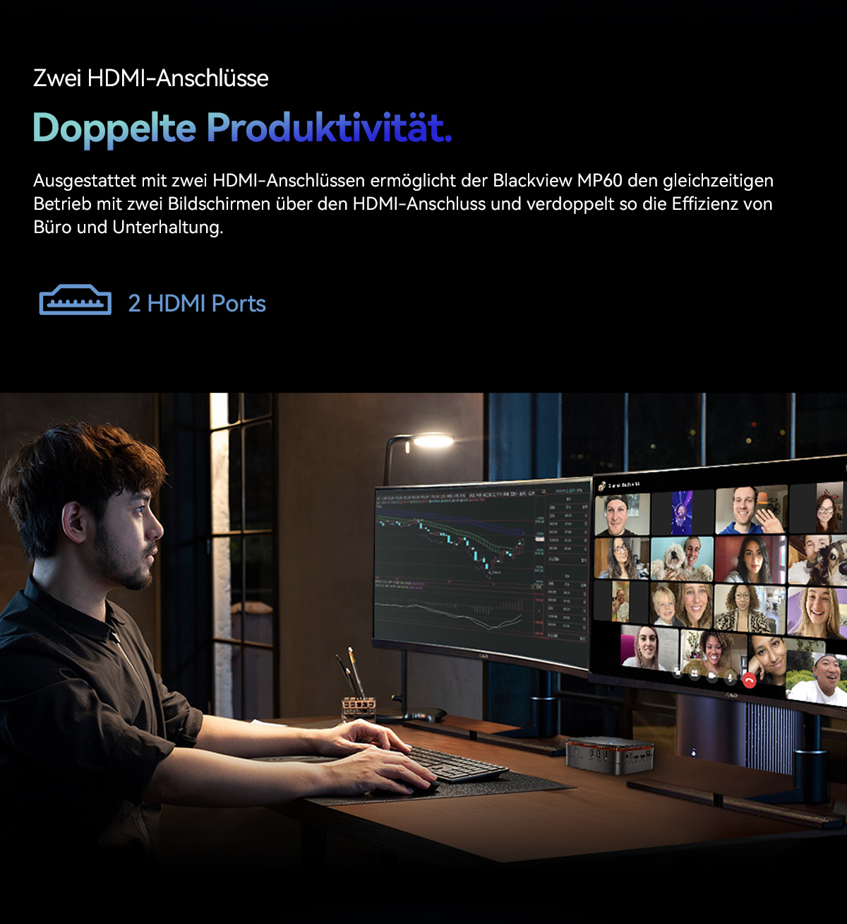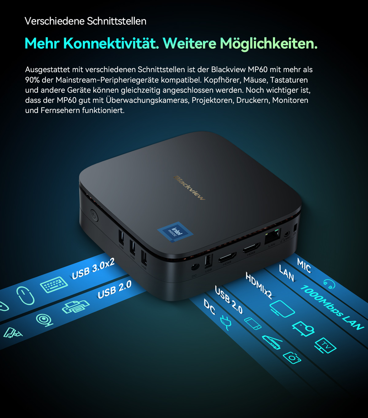 【4K Dual HDMI Videoausgang】 Der Blackview Mini-PC verfügt über eine integrierte Intel UHD-Grafik, die eine schnellere Bildverarbeitung und 4K UHD (4096 x 2160 bei 60 Hz) Videowiedergabe ermöglicht. Durch die Unterstützung der Dual-Screen-Anzeige sparen Sie Zeit und verbessern Ihre Arbeitsleistung. Genießen Sie flüssige 4K UHD-Videos zu Hause und erleben Sie ein großartiges Fernseherlebnis mit realistischer Bildqualität. Ideal für visuelles Home-Entertainment, Home-Office, Konferenzraum usw.