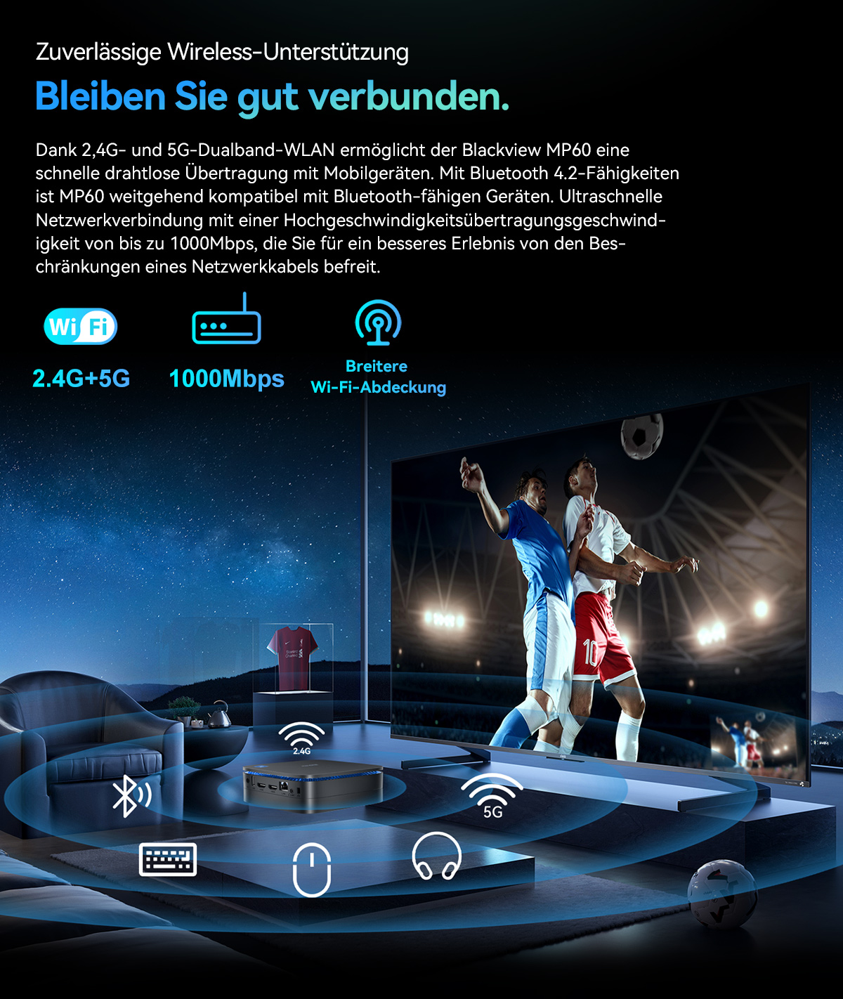 【Optimieren Sie Ihren Arbeitsplatz】 Der Blackview Mini-Gaming-PC verfügt über 2 x USB 2.0, 2 x USB 3.0, 2 x 4K HDMI, einen RJ45 Gigabit Ethernet-Anschluss, 1 x DC, 1 x 3,5-mm-Audioanschluss (Ein/Aus) sowie 2,4G/5,0 GHz Dualband-WLAN und Bluetooth 4.2. So können Sie problemlos mehrere Bluetooth-Geräte verbinden, wie z. B. Headsets, Mäuse, Tastaturen und mehr gleichzeitig – für ein besseres Arbeitsumfeld. Klein und leicht – der ideale tragbare Mini-PC für Geschäftsreisen.
