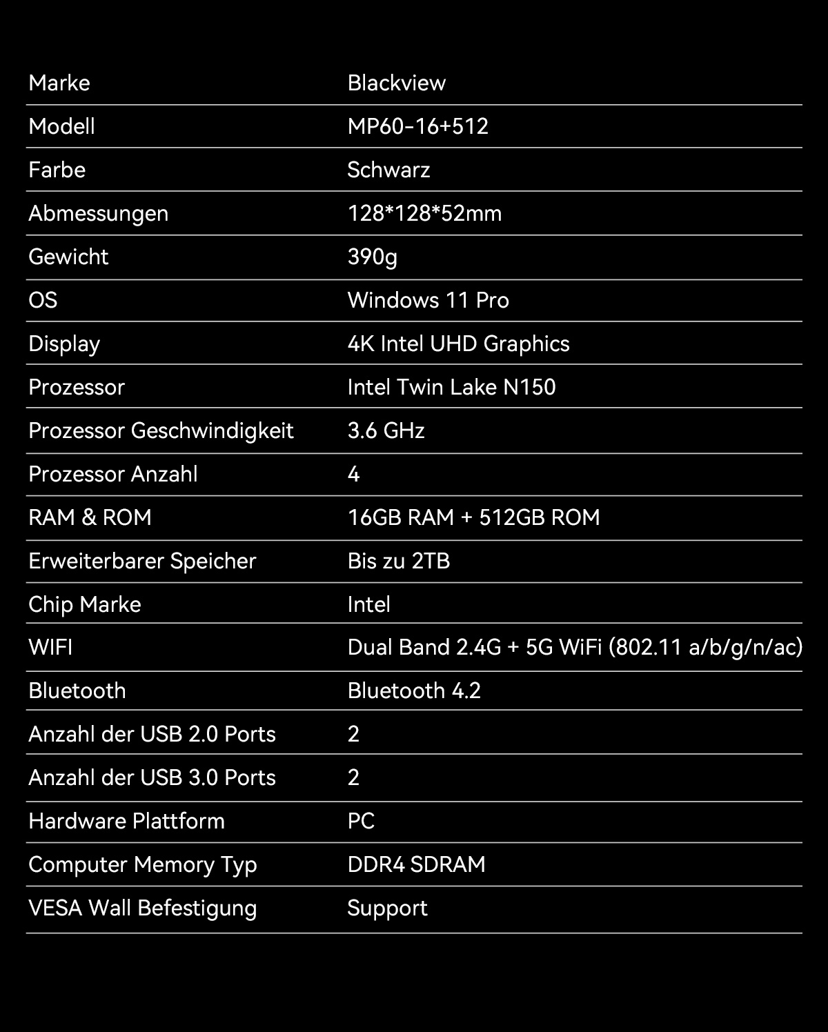Blackview Mini-PC MP60 N150 ------ 16 GB + 512 GB/1TB