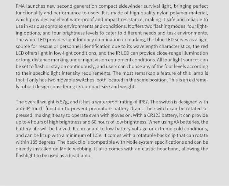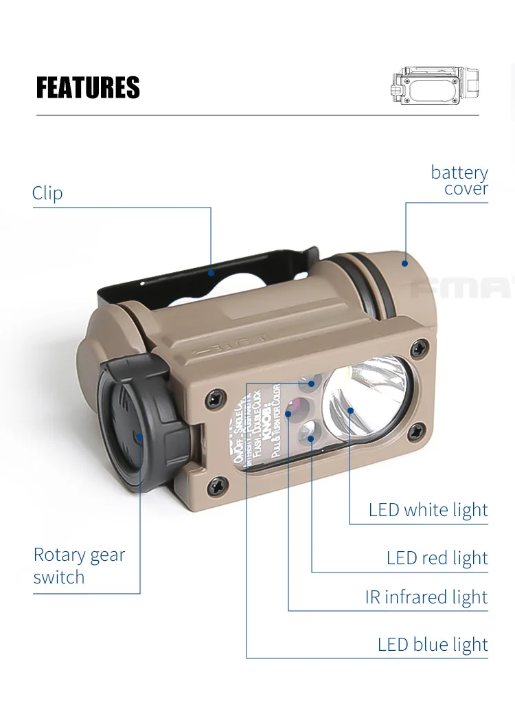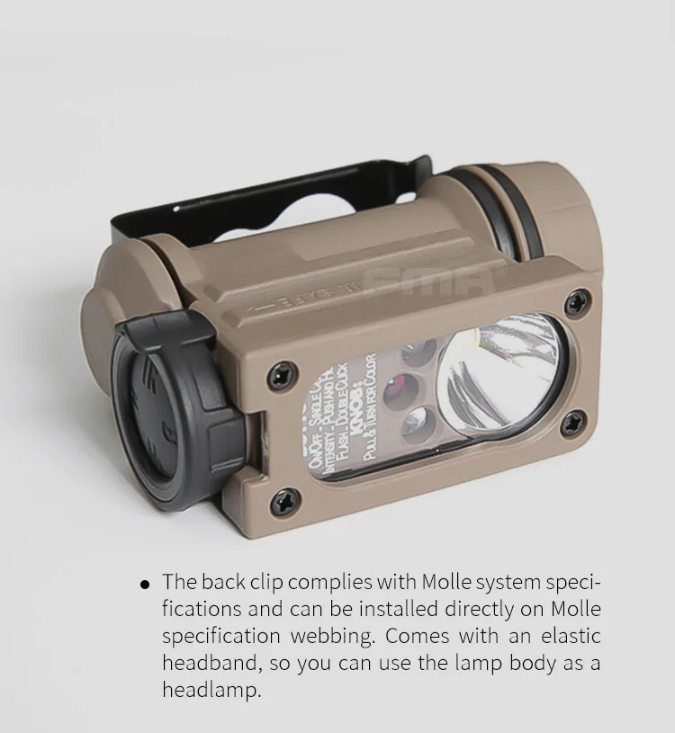 FMA Helmet Accessories Tactical Molle Upgraded Ver Compact Survival Light Headlamp With IR/LED Light Tricolor Flashing Signal Lamp Waterproof IPX6