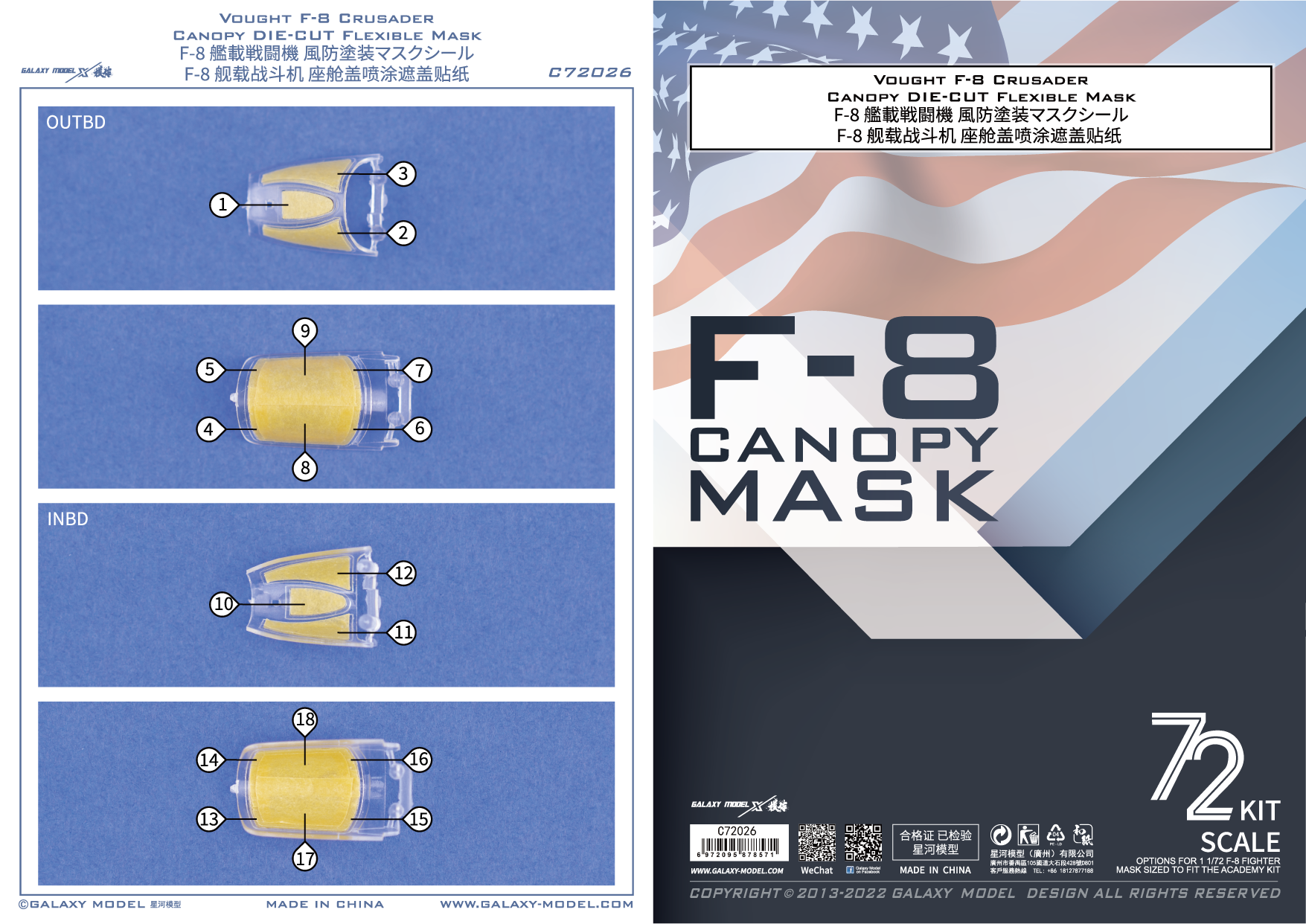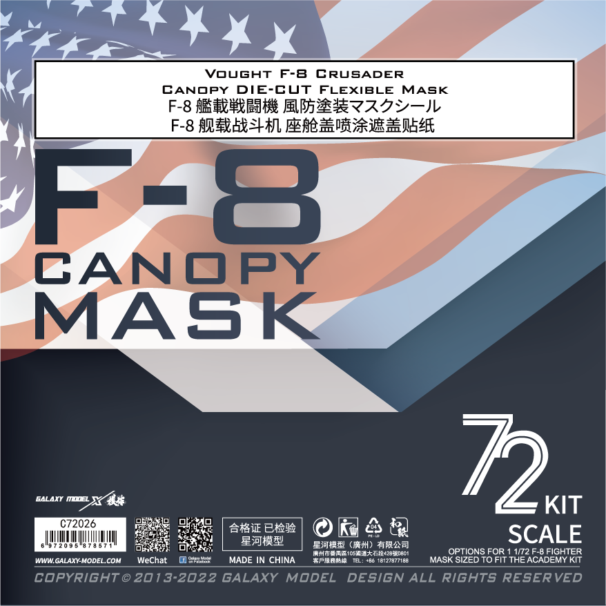 Galaxy C72026 1/72 scale F-8 Canopy DIE-CUT Flexible Mask