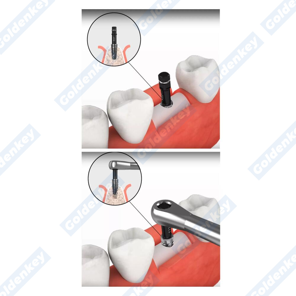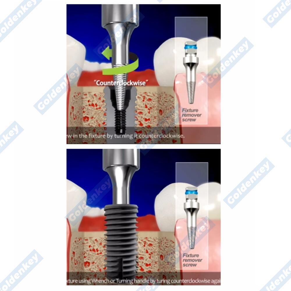 2.To loosen the implant the Fixture Remover Tool should rotate counter-clockwise direction and while the tool engages in the screw opening it will unscrew the implant from its place.