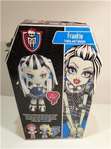 This is for a Monster High Frankie Freaky & Fabulous soft doll. Doll is new in box but the box has a side tear as shown. Doll has some spots under the green eye as shown. Never taken out of the box. Being sold as shown.
