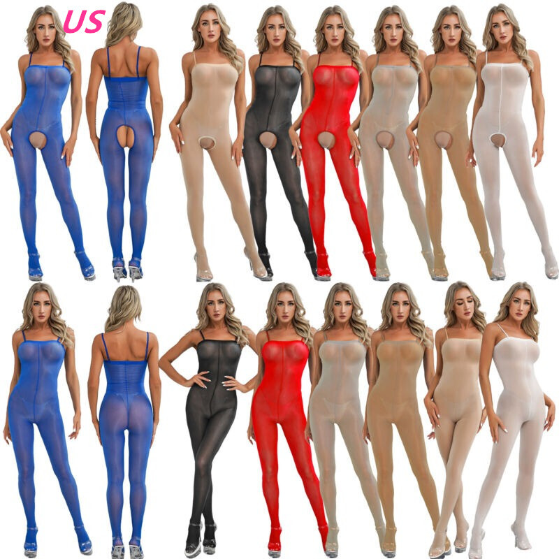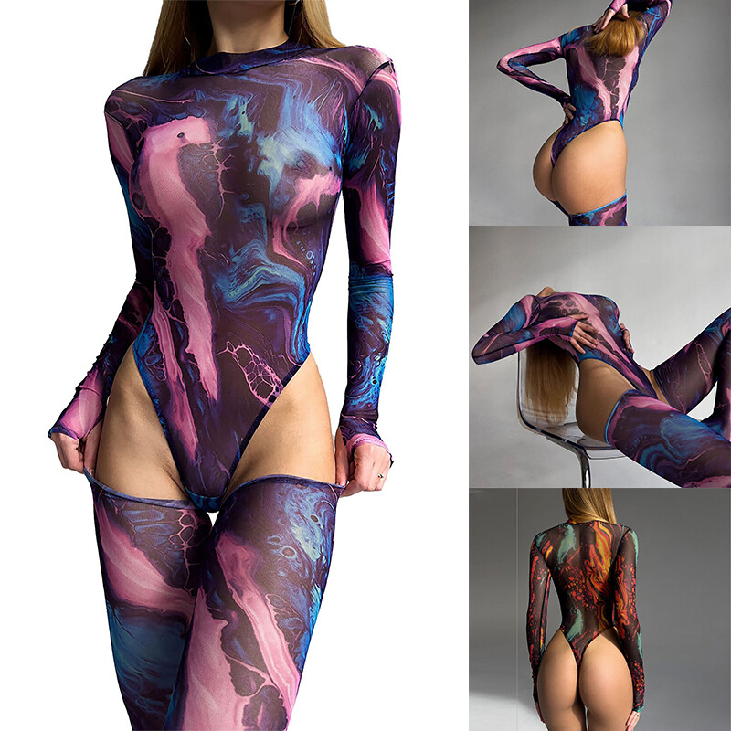 Stretchy fabric will enhance your slender and shapely body; see-through bodysuit has glossy looking to make you more charming.