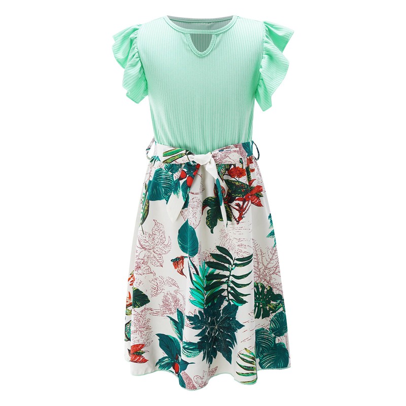 The charming ruffled sleeve adds an adorable element, makes your girl look cute. Pair with a belt.