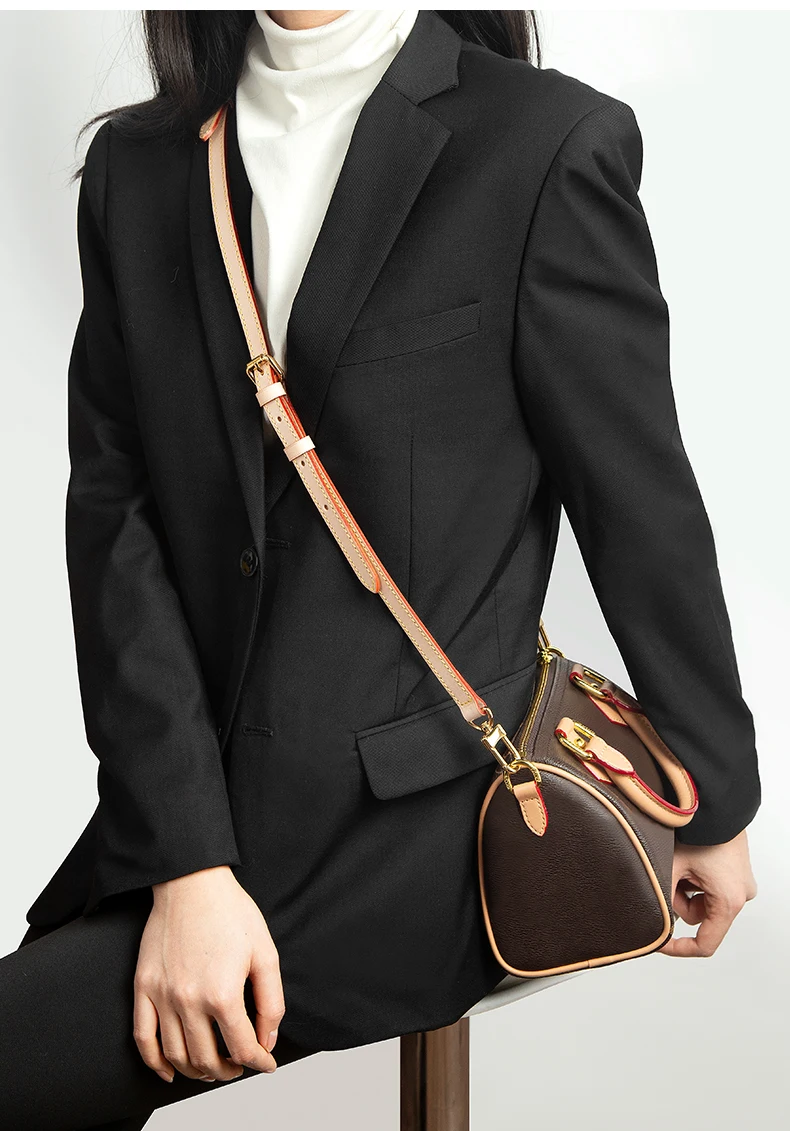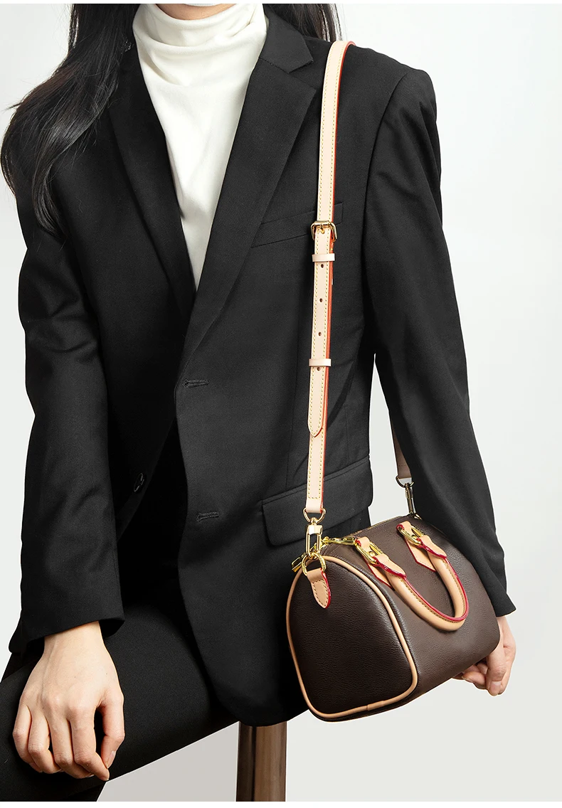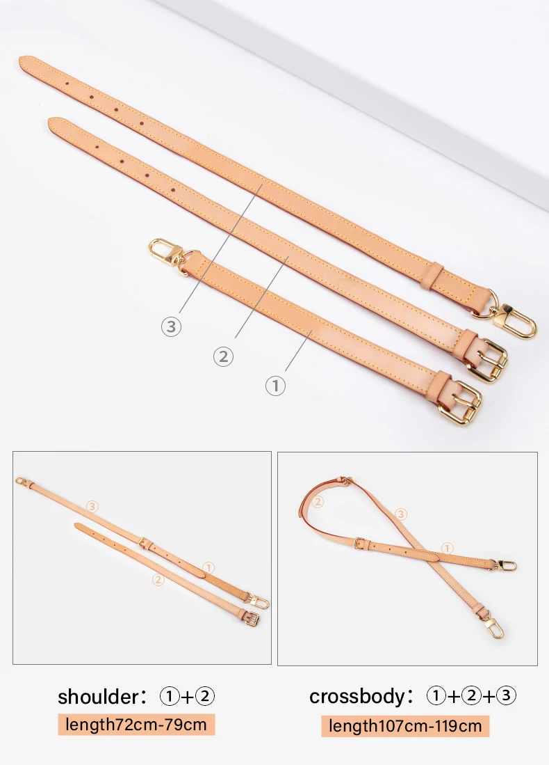 ---Our bag strap is made of high quality first layer cowhide leather. Especially the natural color is made of French imported vegetable tanned cowhide leather ,which don't contain harmful substance to human body, is the only one leather which can be dermal contact directly.