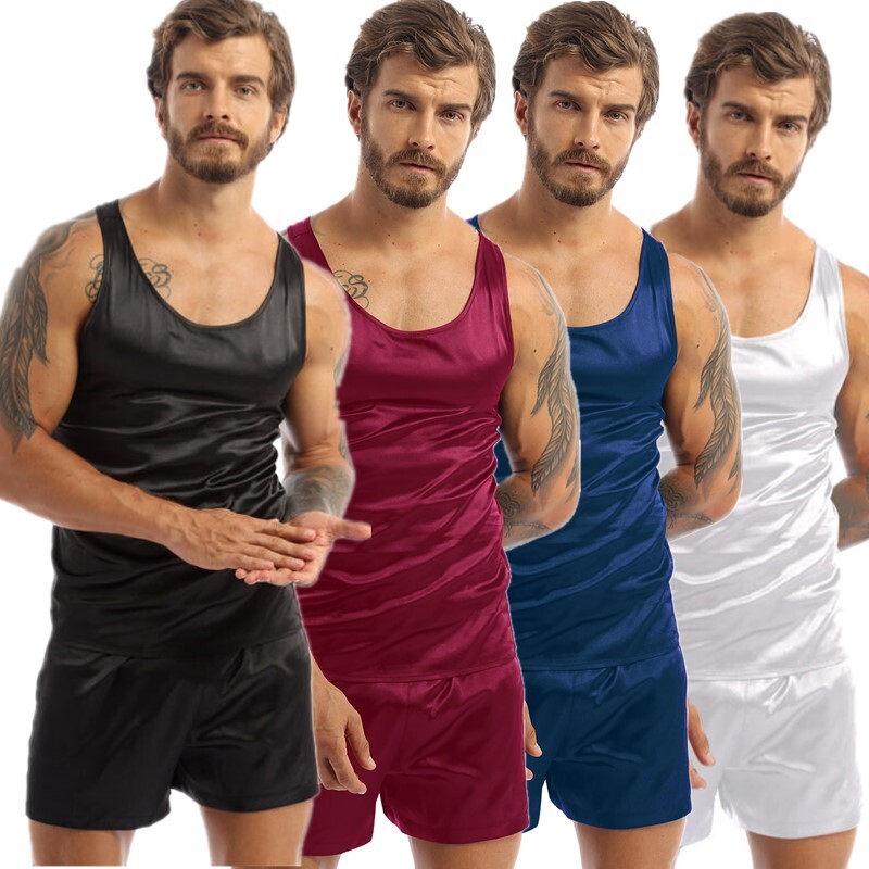Men Satin Boxer Shorts Homewear Solid Color Elastic Waistband Button Short Pants Sleepwear Nightwear.