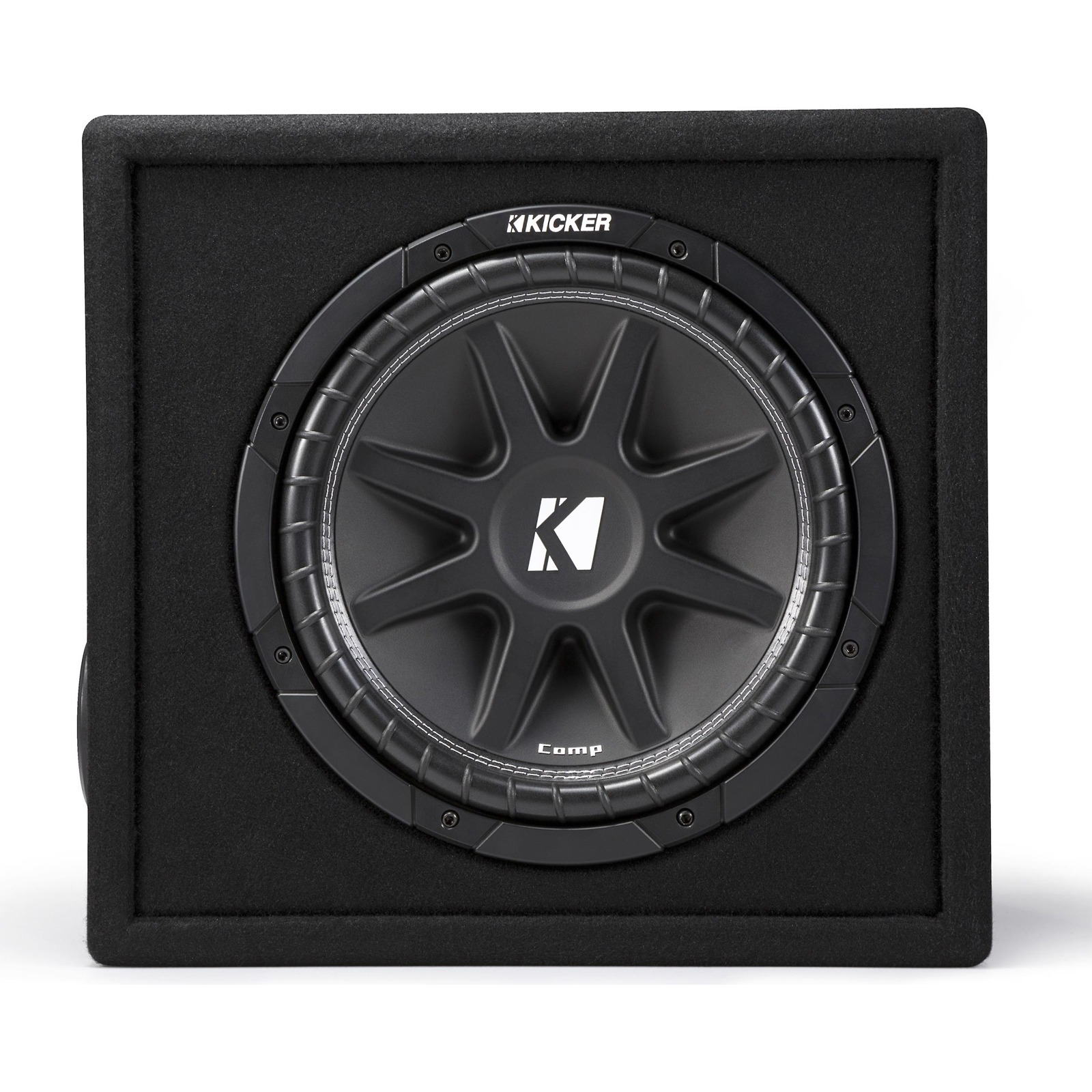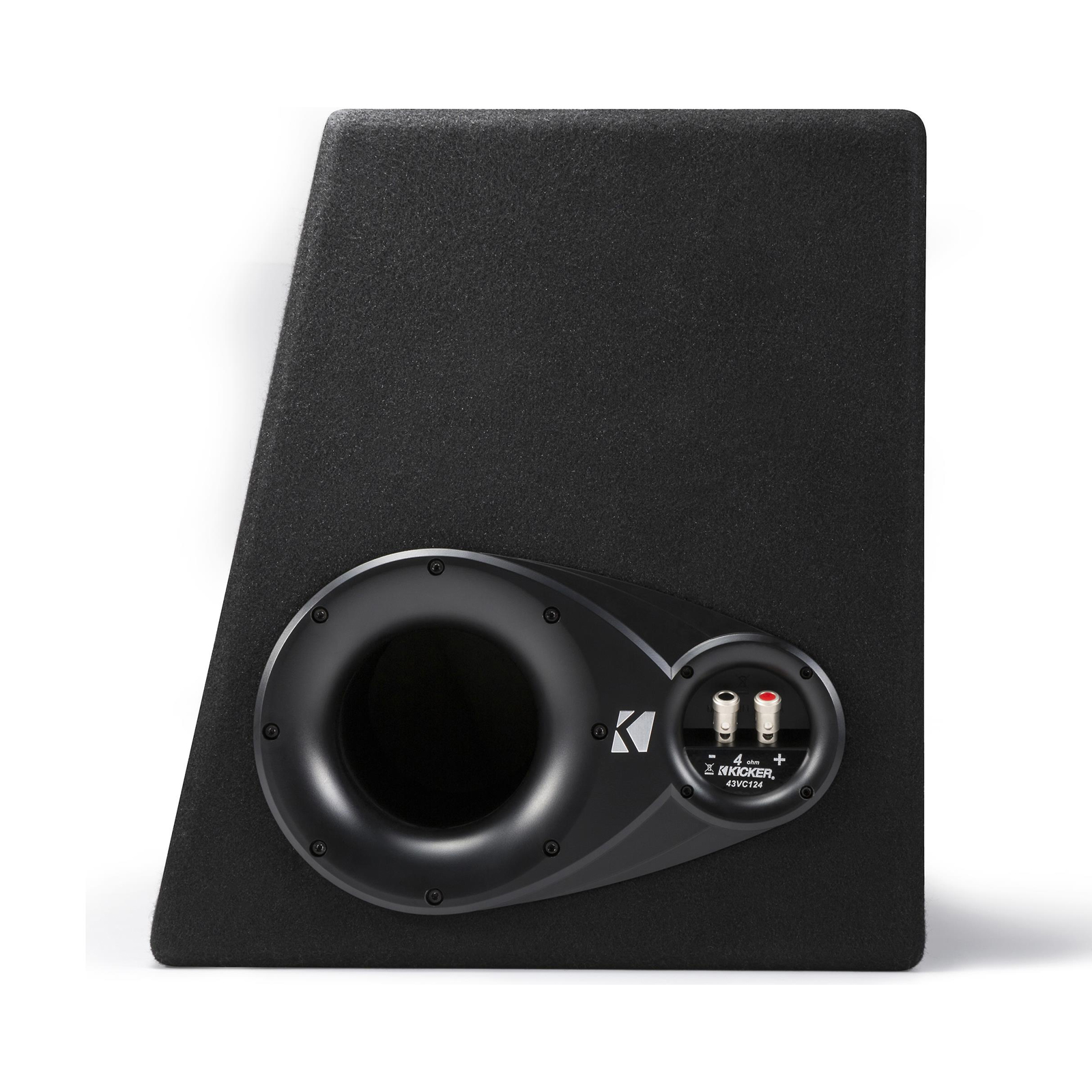 The Kicker 43VC124 Comp subwoofer features a stiff injection-molded polypropylene cone supported by a double-stitched ribbed foam surround for deep excursion. The back-braced cone design keeps the woofer stable during those hard hits, while the perimeter venting system helps cool the sub's internal parts during demanding performances. A strong steel basket provides a stable foundation that won't flex during hard use. This VC124 loaded enclosure puts a thumping 12" subwoofer behind your music. The rugged ported box was designed specifically for the subwoofer, so you can count on getting maximum performance. Connect your speakers with the included 50 feet 16 gauge speaker wire.
