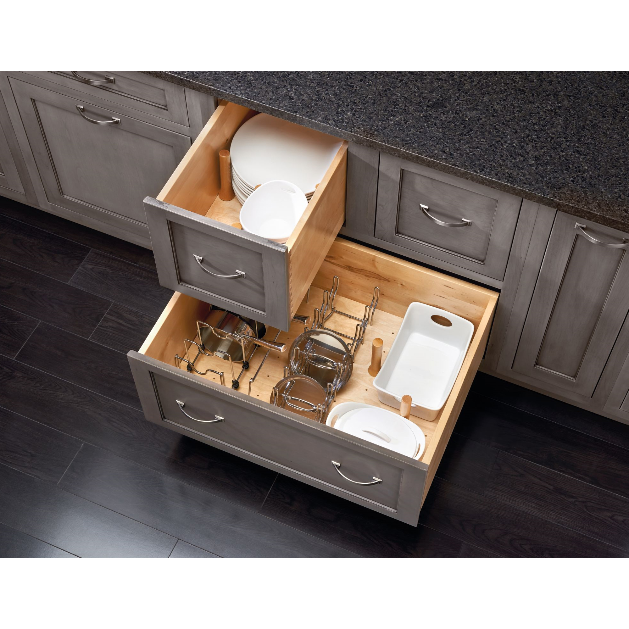Declutter your cabinet or drawer and make the most of your home space with the Rev-A-Shelf 24 x 21'' Wooden Trimmable Pegboard Drawer Organizer.