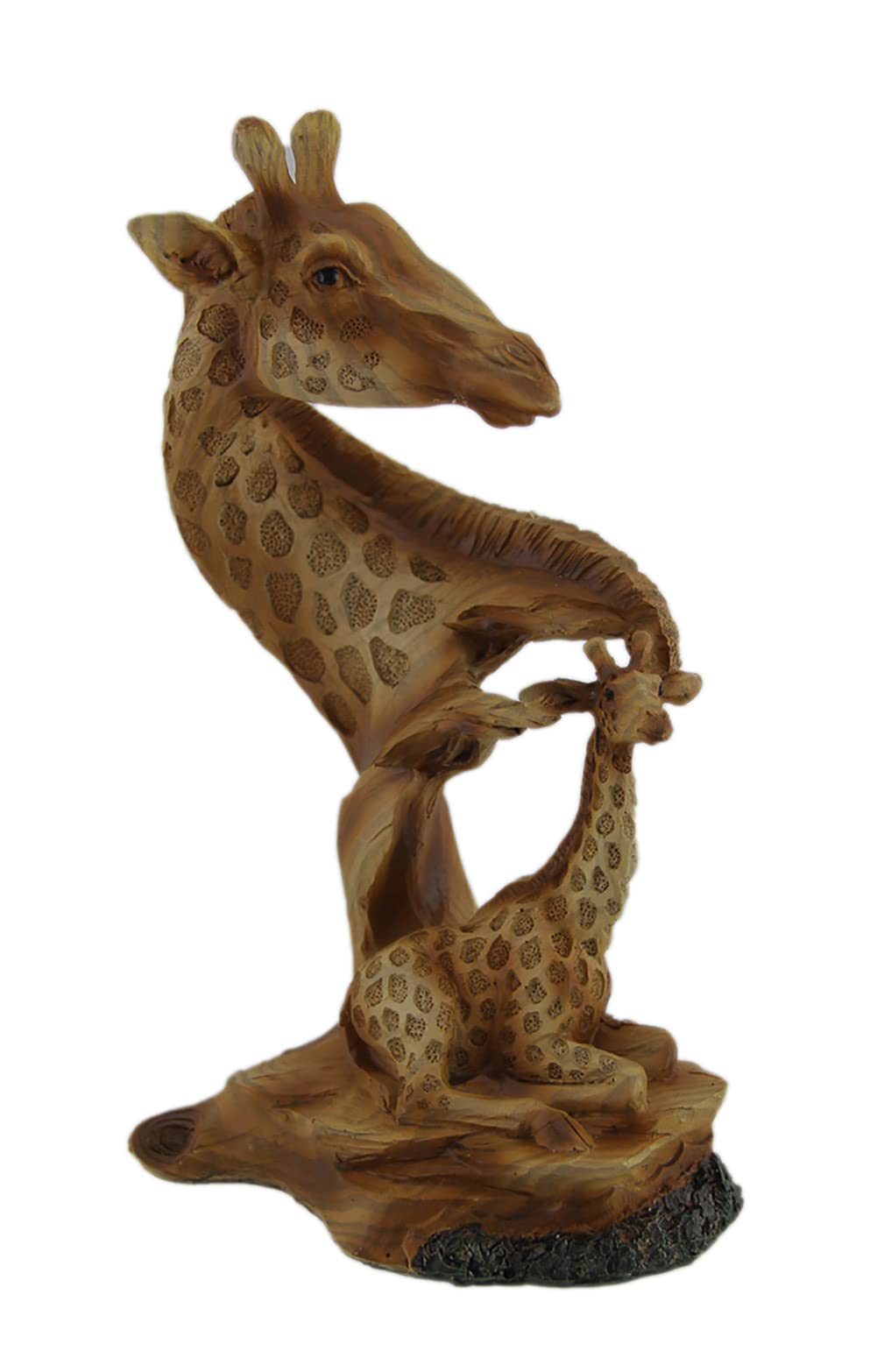 This beautiful tabletop statue depicts a mother giraffe and her calf. Crafted