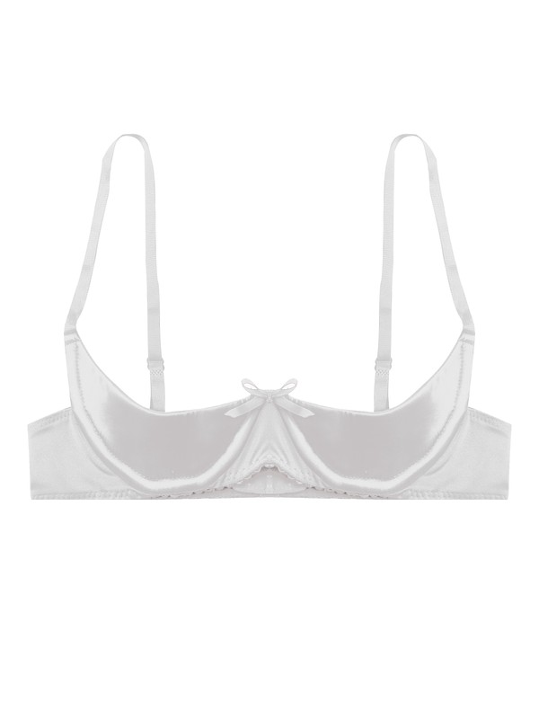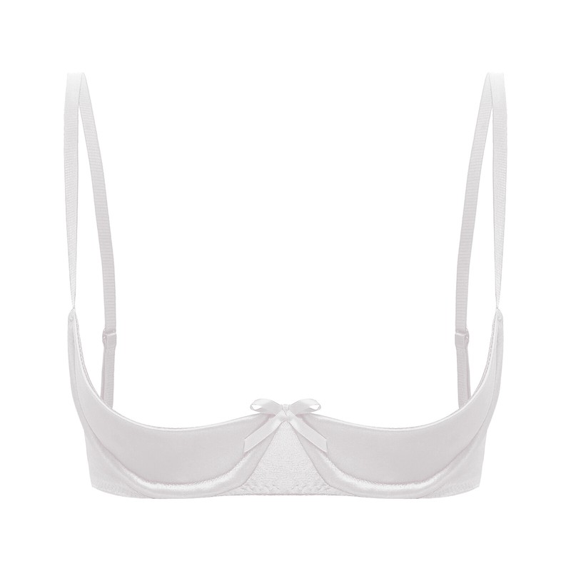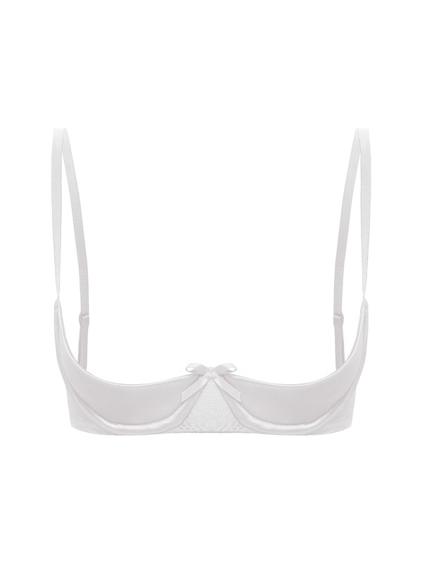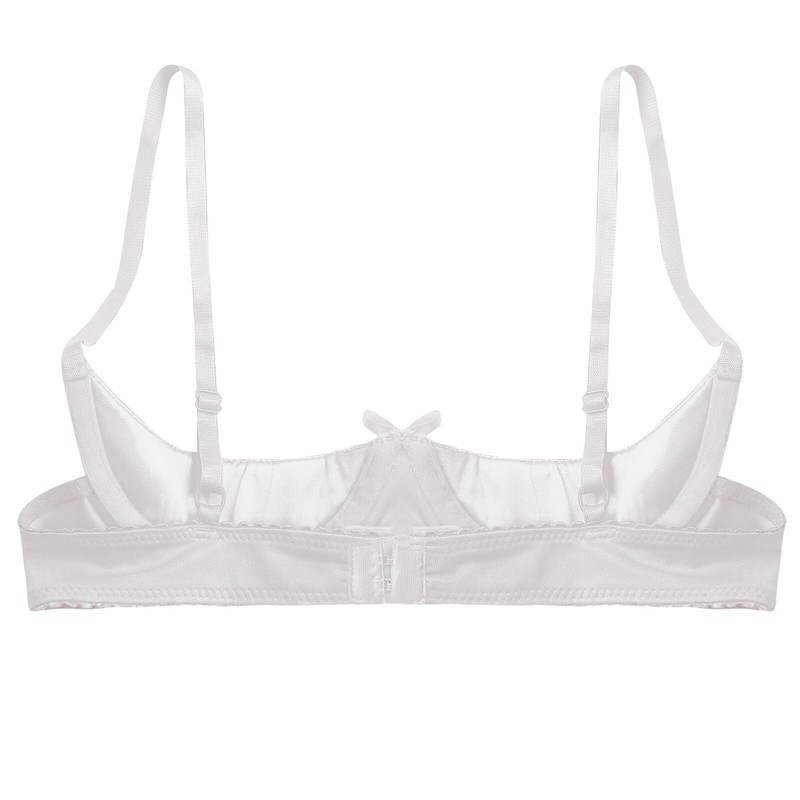 Women's Sexy Satin 1/4 Cup Underwire Bra Push Up Shelf Bra Balconette Brassiere