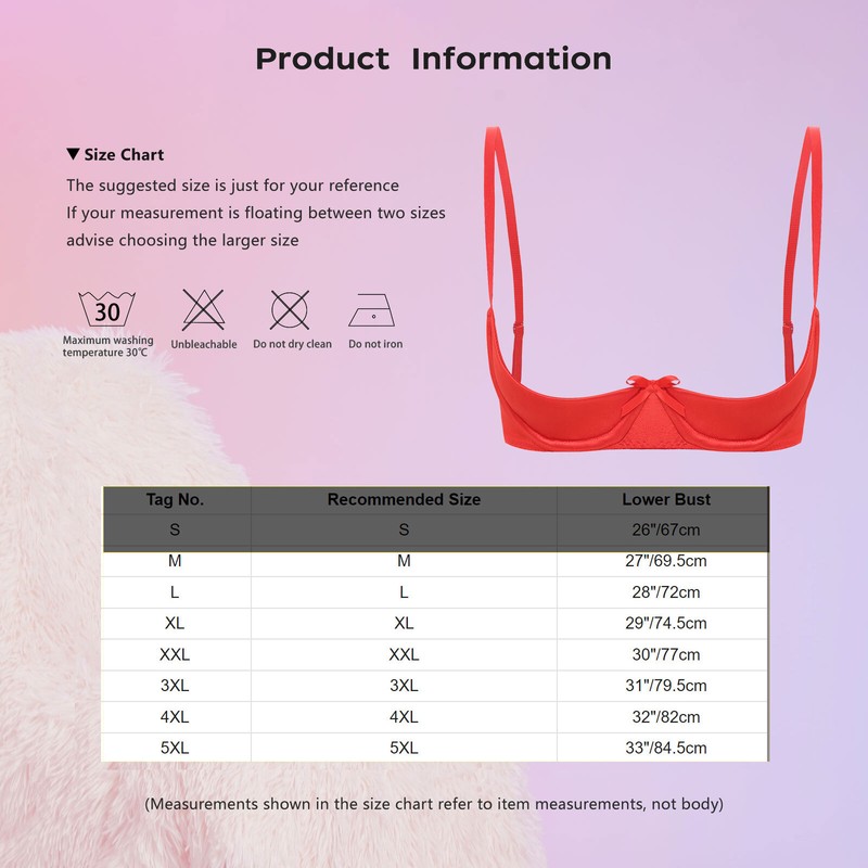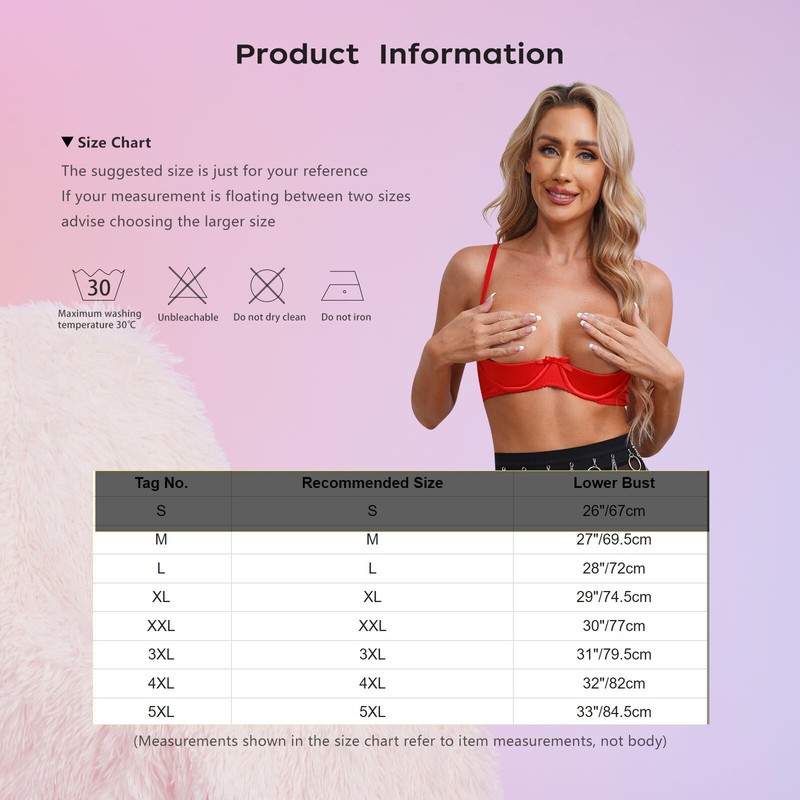 Half cup and underwire provides support to push up your big boobs, shape great cleavage, making you superbly sexy and charming.