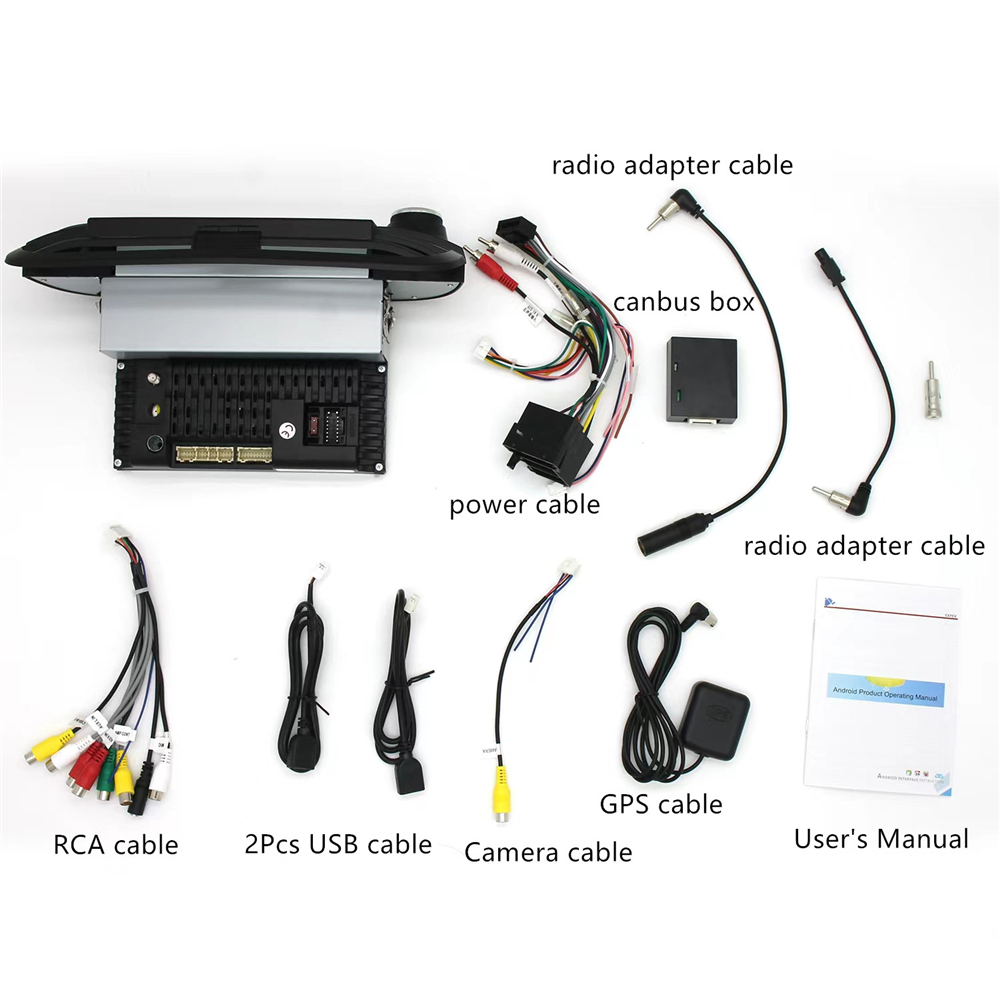 Accessories | -1 x Car Radio Stereo With Frame -1 x GPS Cable -2 x USB Cable -1 x RCA Cable -2 x Radio Adapter Plug -1 x Camera Input Cable -1 x User 's manual |