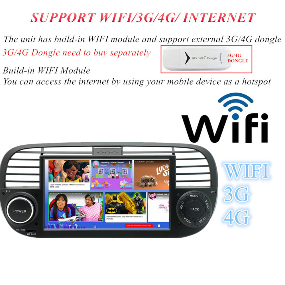 WiFi/3G/4G | - Connector: On the Back - WiFi: Built-in WiFi Modem, support 802.11b/g/n - Supports 4G & 3G Internet (4G Dongle and 3G Dongle are not included) |