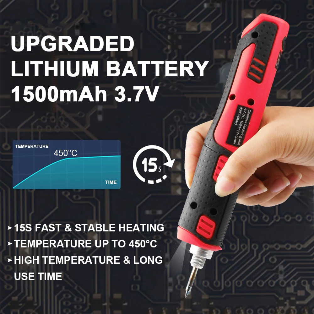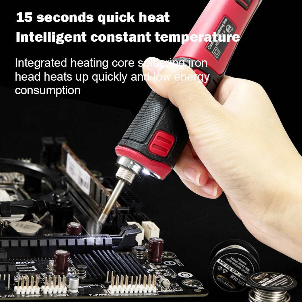 3. 15 seconds fast heating: integrated heating core soldering iron head, heating fast and low energy consumption.