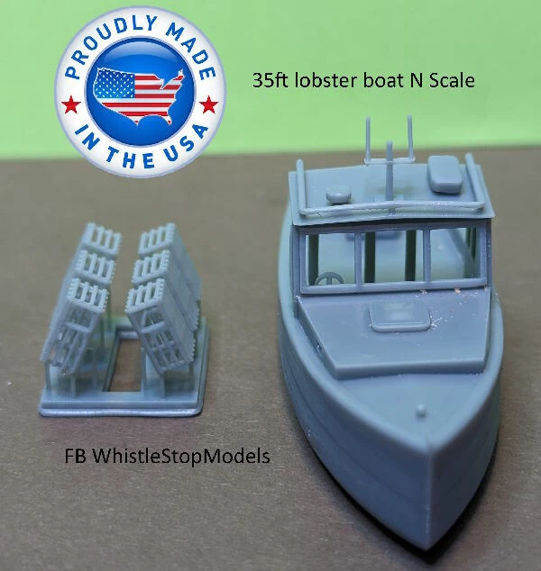 Fine details to add interest to your freight train! This set includes: (1) Decked out lobster boat. (6) lobster traps to place on the boat or on your deck scene.
