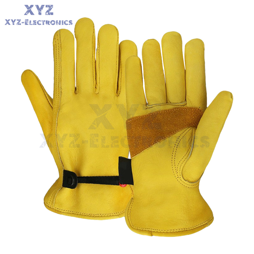 Yellow Leather Driver Work Gloves Security Protection Wear Safety Work Gloves