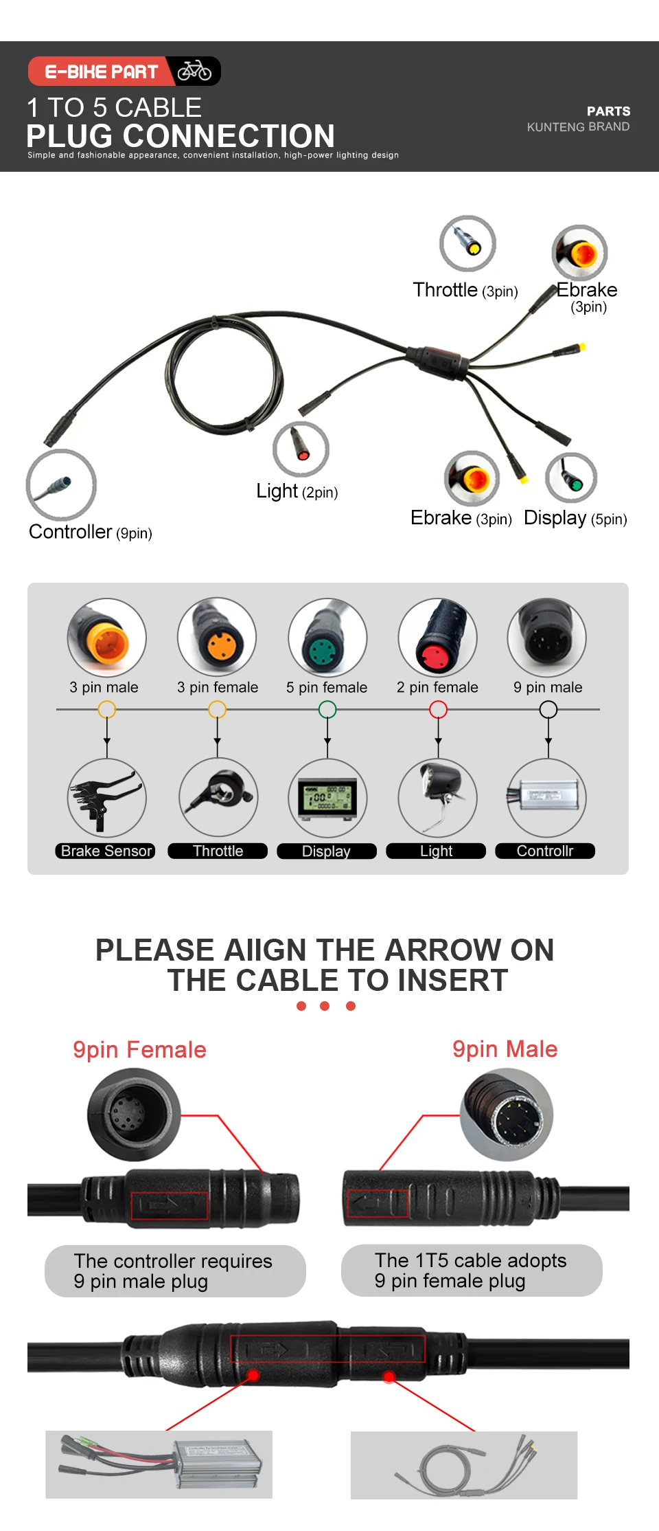 ●1.KT controller only compatible with KT display .Same communication protocol.We have given pictures to teach you how to distinguish.Please check before place the order .