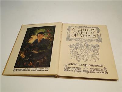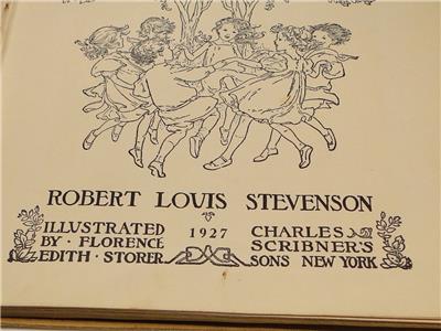 This is for the old children's book, A Child's Garden of Verses by Robert Louis Stevenson. Illustrated by Florence Edith Storer. 1927. Charles Scribner's Sons. Wear to cover and slight separation from spine. Pages light browning.