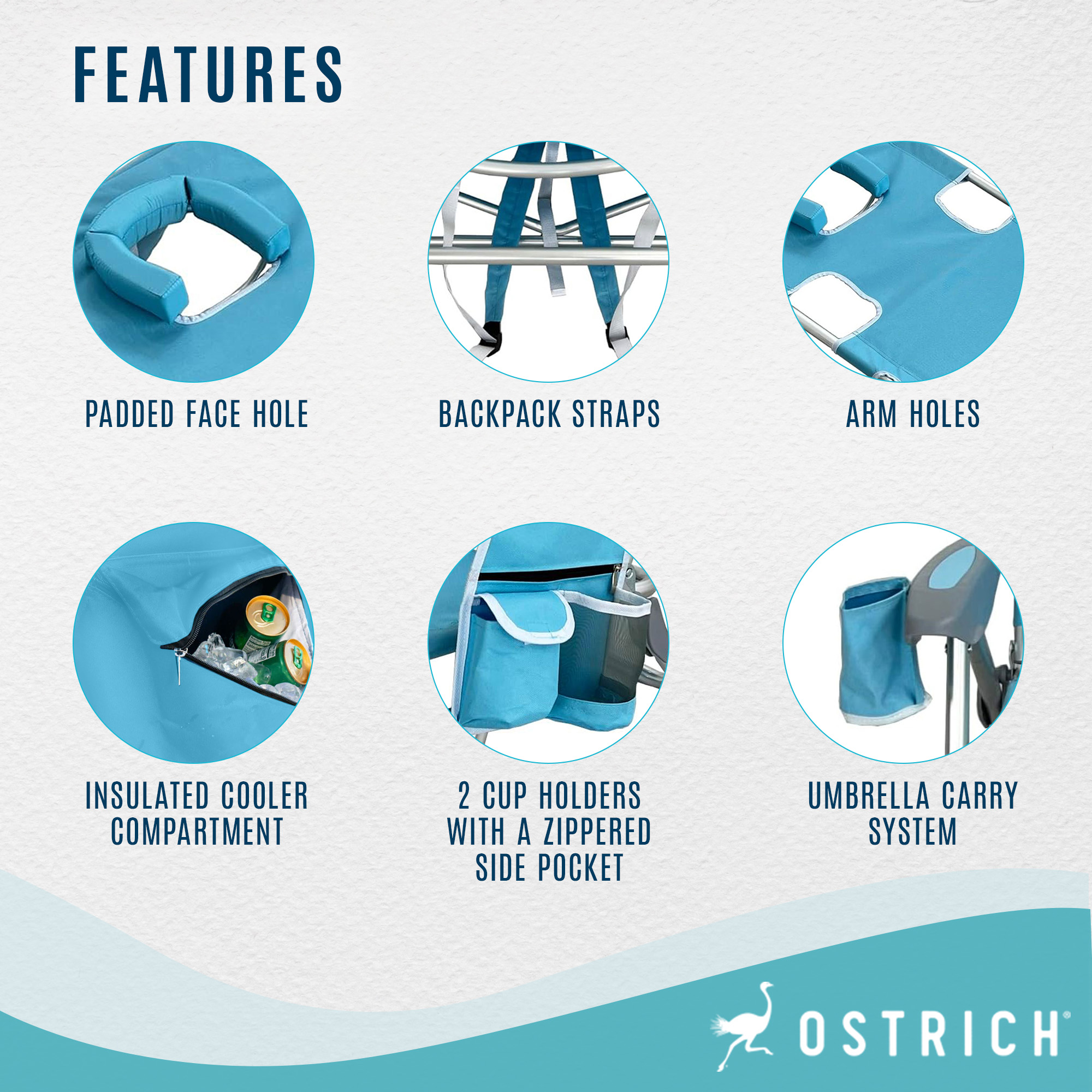 Whether you're at the beach, park, or in your backyard, this chair is your go-to companion for superior comfort and portability. Enjoy the ultimate in beachside relaxation with the Deltess Ostrich Deluxe On Your Back Chair.
