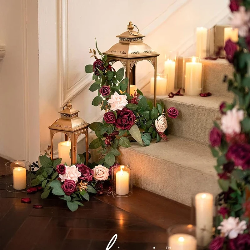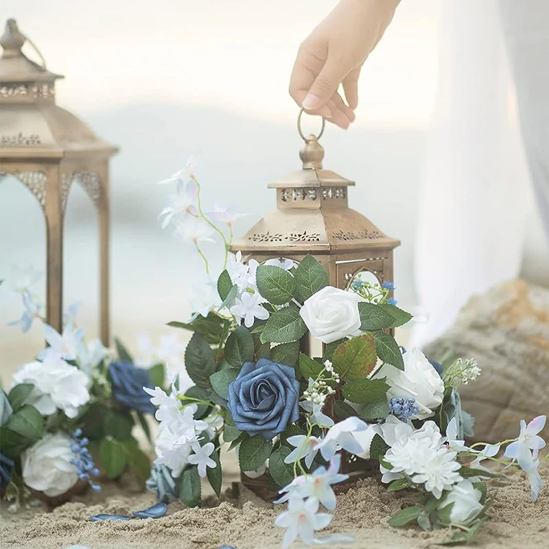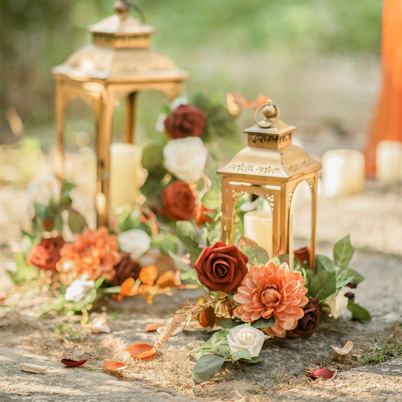 artificial flowers never wilt. These flower arrangements for lanterns are made up with foam avalanche roses, rosebuds, silk roses, and greeneries. They look not only beautiful but very lifelike.