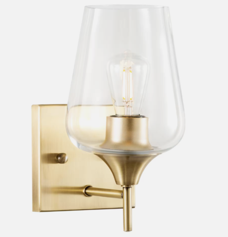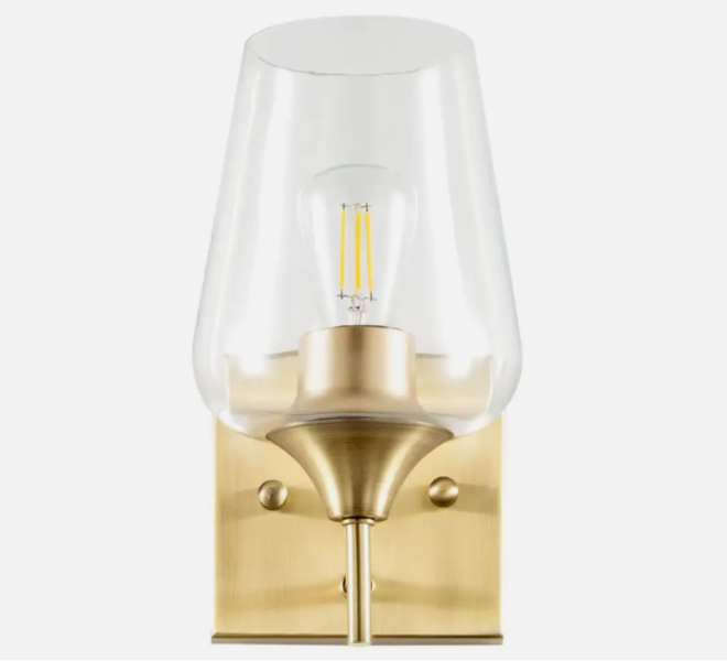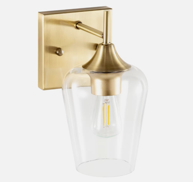 Looking for something special to spruce up your home decor. This single-light wall sconce is sure to grab everyone's attention. This simple but sophisticated piece combines classic and industrial elements: the transparent glass shade has the organic lines of a traditional wine glass while the backplate's antique brass finish and clean lines give it a modern backdrop. Perfect for brightening any room in your home from your bedroom to living room, guest room to hallway, this wall lamp's dual nature lets it blend harmoniously with interior decor from modern minimalist to rustic farmhouse. The BEST part. You can turn the wall fixture's shade upwards or downwards to suit your needs. Ensconce any LED, CFL, Edison or incandescent light bulb (not included) up to 60-Watt in the standard E26 socket and you'll be ready to enjoy this lamp's eye-catching ambience. Bring the inviting warm, rich tones of this wall fixture to your home.