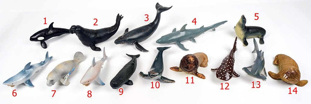 Die Figuren stammen von Bullyland und AAA. Im Auswahlmenü ist vermerkt von welchem Produzenten die jeweilige Figur ist und wie lang die Figur ist. Bild 2 und Bild 3 zeigen die Figuren mit Nummern, anhand der Sie im Auswahl-Menü ausgewählt werden können.