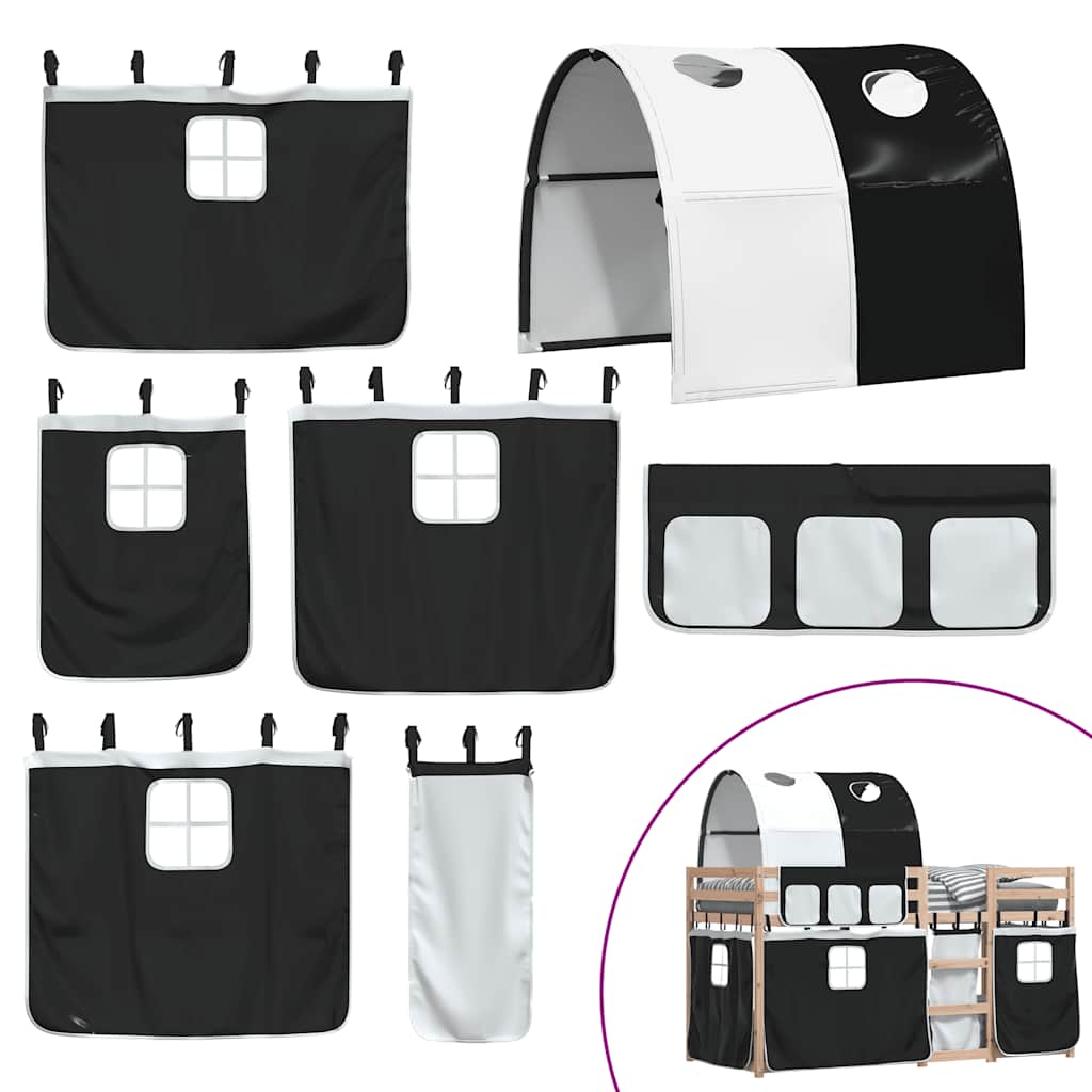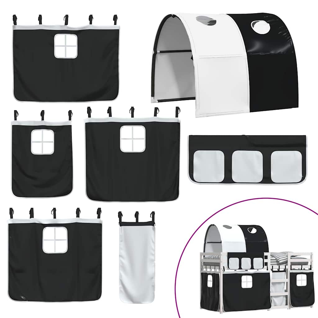 Etagenbett Kinderbett Hochbett mit Vorhängen Weiß Schwarz 80x200cm Kiefer vidaXL