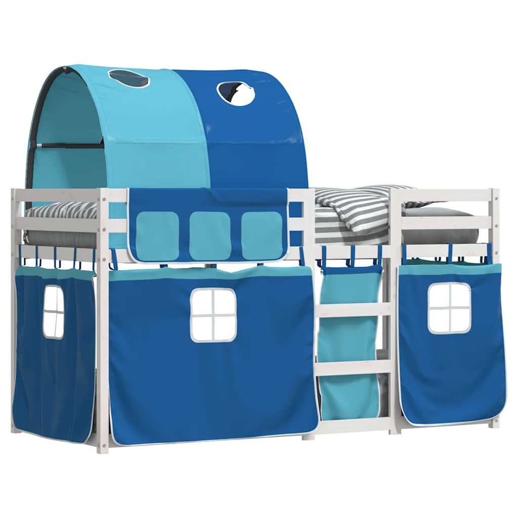 Etagenbett Kinderbett Hochbett mit Vorhängen Blau 90x200cm Massivholz vidaXL